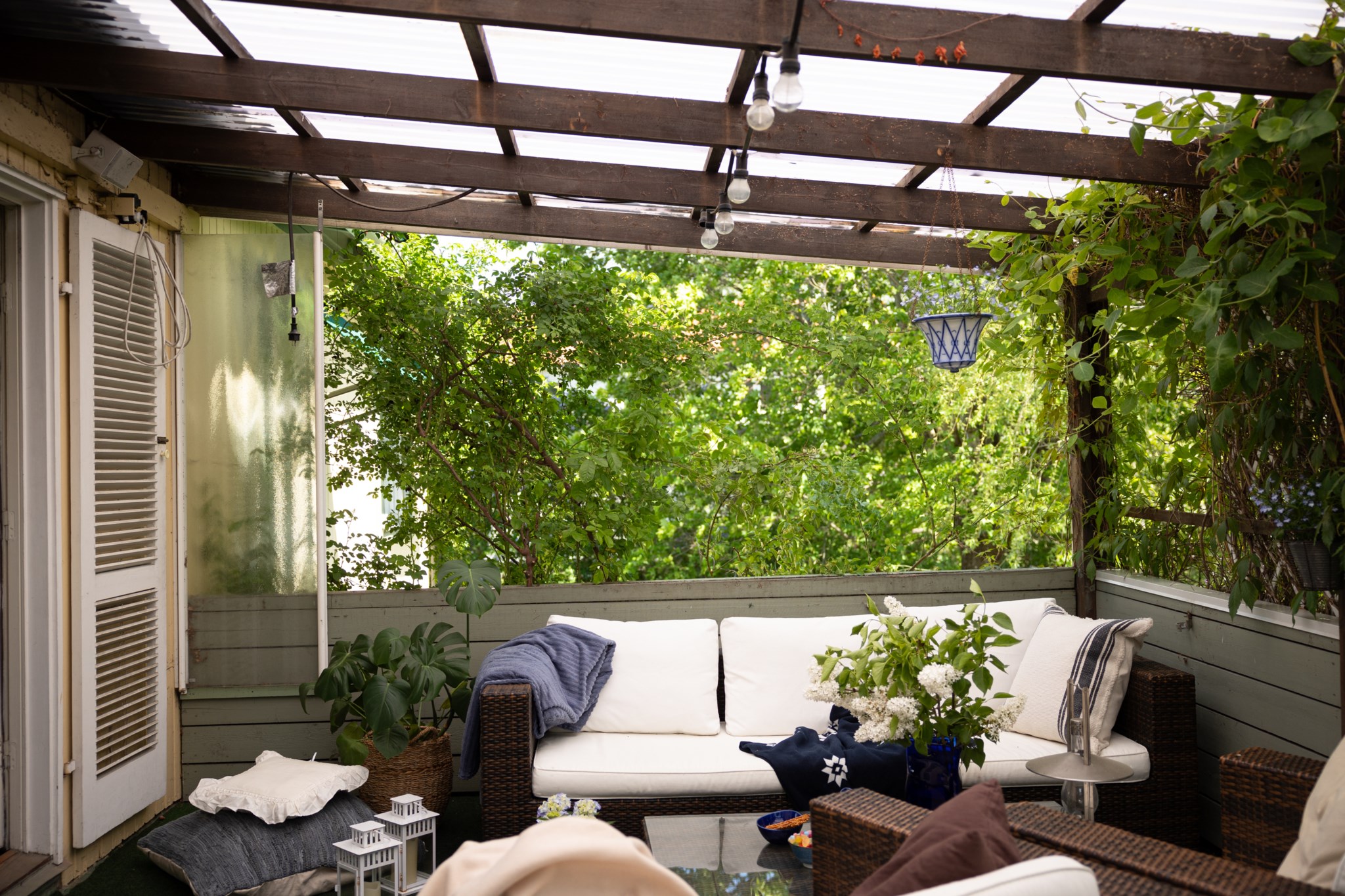 - Altan som erbjuder gott om plats för både matgrupp, loungemöbler, grill och växter. En underbar altan som blir ett extra rum under de varma månaderna.
