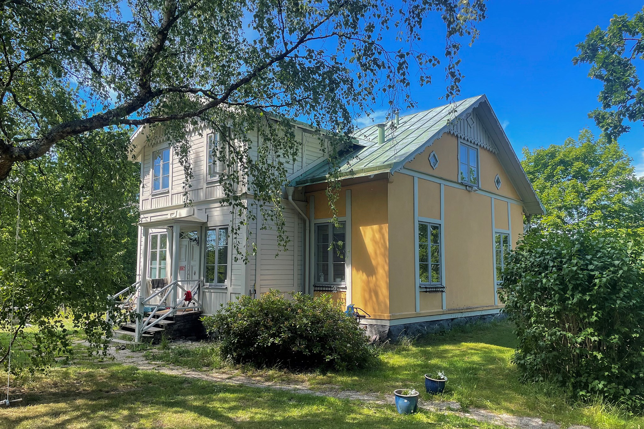 Redan vid ankomsten möts man av husets karaktär – en vacker sekelskiftesvilla från 1880, omsorgsfullt bevarad och belägen i en naturskön miljö vid Kyrkviken på Lidingö. Här förenas historisk charm med modern komfort i en vacker helhet.