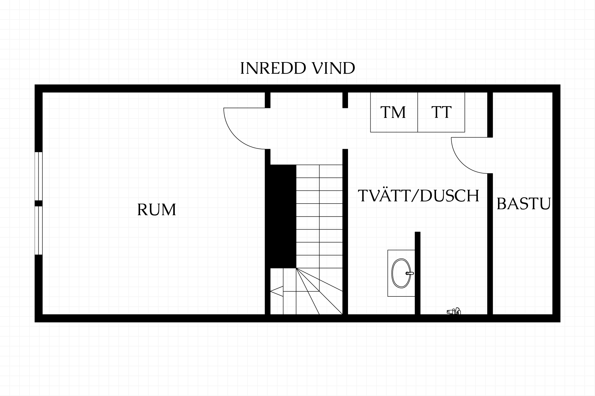 En trappa upp finns en inredd vind med ett fint sovrum och stort fönsterparti mot trädgården – en perfekt tonårsdel eller gästavdelning. Här finns även ett helkaklat vitt badrum med bastu, dusch och tvättstuga (renoverat 2014).