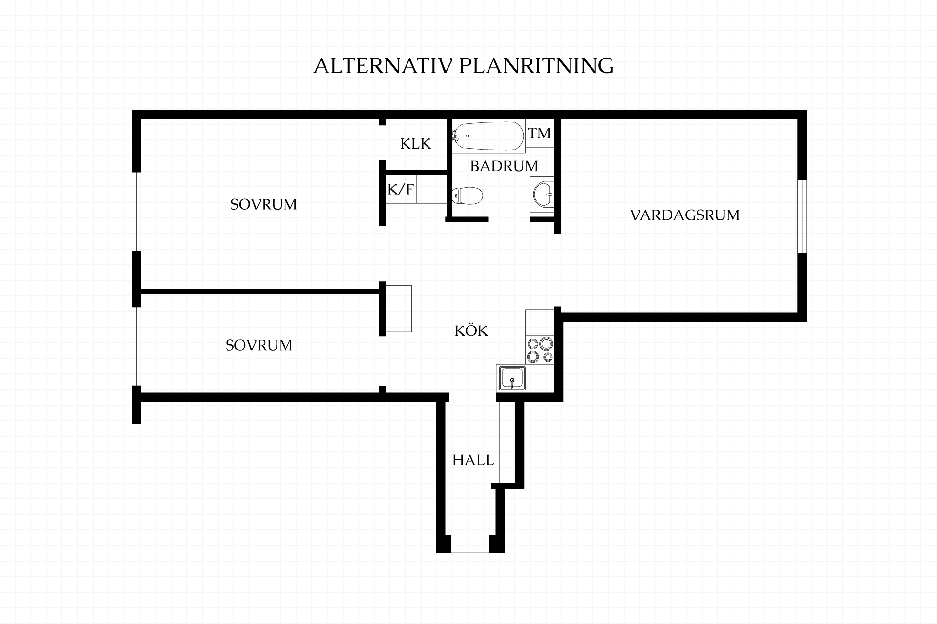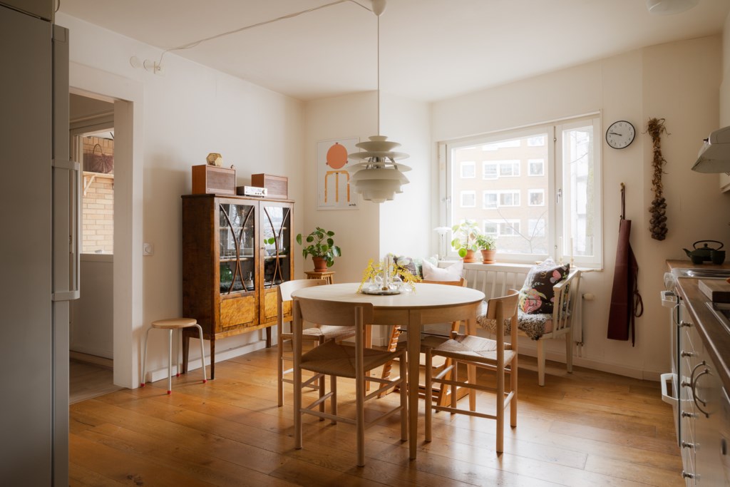 Från entrén når man den generösa inre hallen som idag nyttjas som bibliotek och knyter ihop bostadens rum. Här finns ett vackert serveringsskåp och en rymlig klädkammare. Köket är nyligen renoverat och placerat till vänster om hallen. Härifrån bjuds på en härlig utsikt över himmel, trädkronor och grönska. Bostaden erbjuder ett mycket generöst sovrum som idag är avdelat med en vägg med vackert fönster med spröjs som skapar ett härligt ljusinsläpp även i rummet som nås från hallen. Sovrummet som nås från köket bjuder på samma härliga utsikt som i köket. För den som istället önskar ett lyxigt och generöst sovrum eller en matsal är det enkelt att ta bort väggen som avdelar rummet. Till höger om hallen nås det ljusa och rymliga vardagsrummet med ett underbart ljusinsläpp från det stora fönsterpartiet med spröjs. Här tröttnar man aldrig på att blicka ut över den lummiga och harmoniska utsikten som ändras i takt med årstiderna. Därtill erbjuder bostaden ett lyxigt nyrenoverat badrum med tvättmaskin.