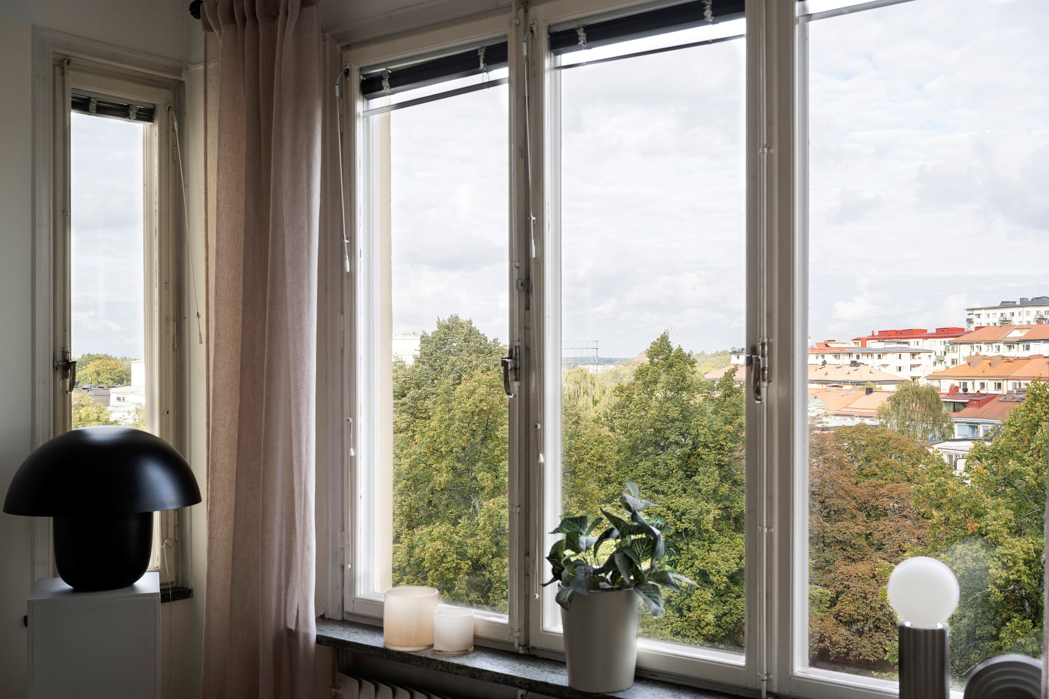 Högt upp i huset på nedre Gärdet återfinns en luftig tvårummare med utsikt över grönska, Askrikegatan och husen som klättrar upp mot Gärdets högsta punkt. Här, på våning sex på lugna Blanchegatan, bor ni minst sagt bra. Fiskbensparkett, vackra originalfönster i burspråk, snickerier och spegeldörr ger charm och karaktär. Planlösningen är väl genomtänkt, med arbetskök, stort vardagsrum, inre hall som går att nyttja som matrum, sovrum med plats för såväl arbetsplats som mycket förvaring. Från alla rum är utsikten vidsträckt och slående - och följdaktligen är insynen lika med noll. Här bor du lugnt och skönt - i ett område nära till allt. Välkomna till Blanchegatan!
