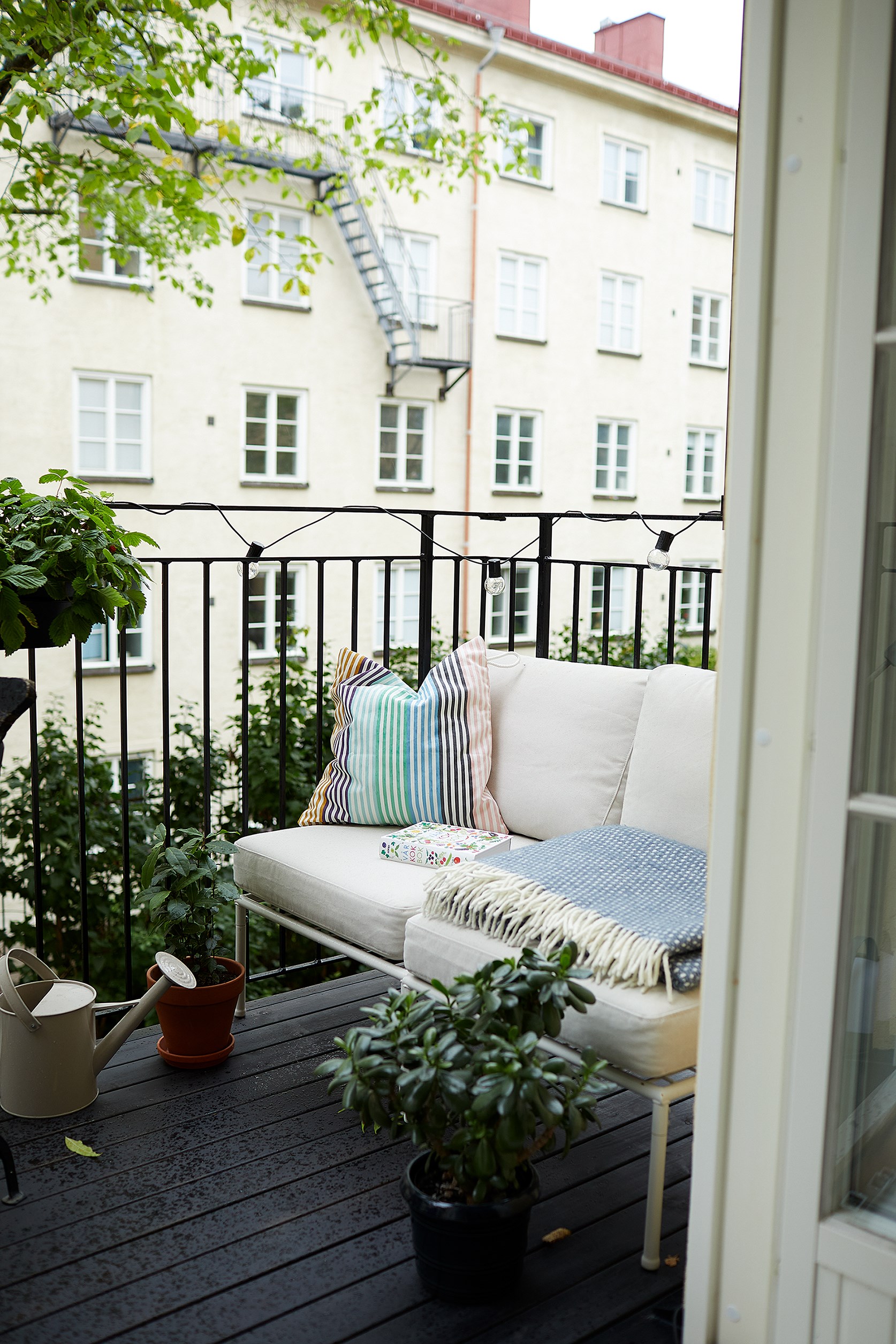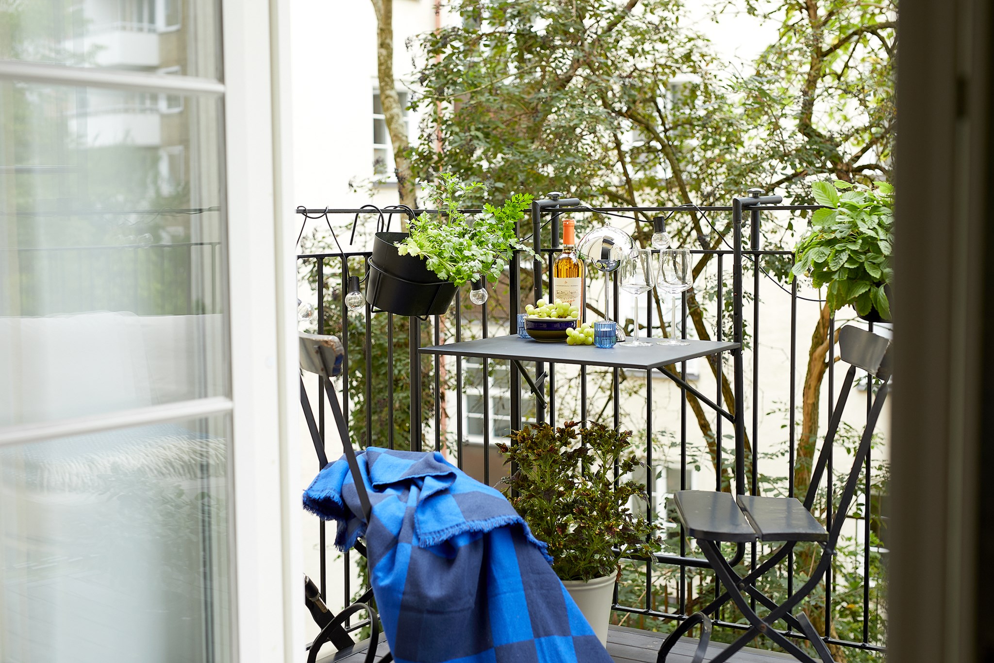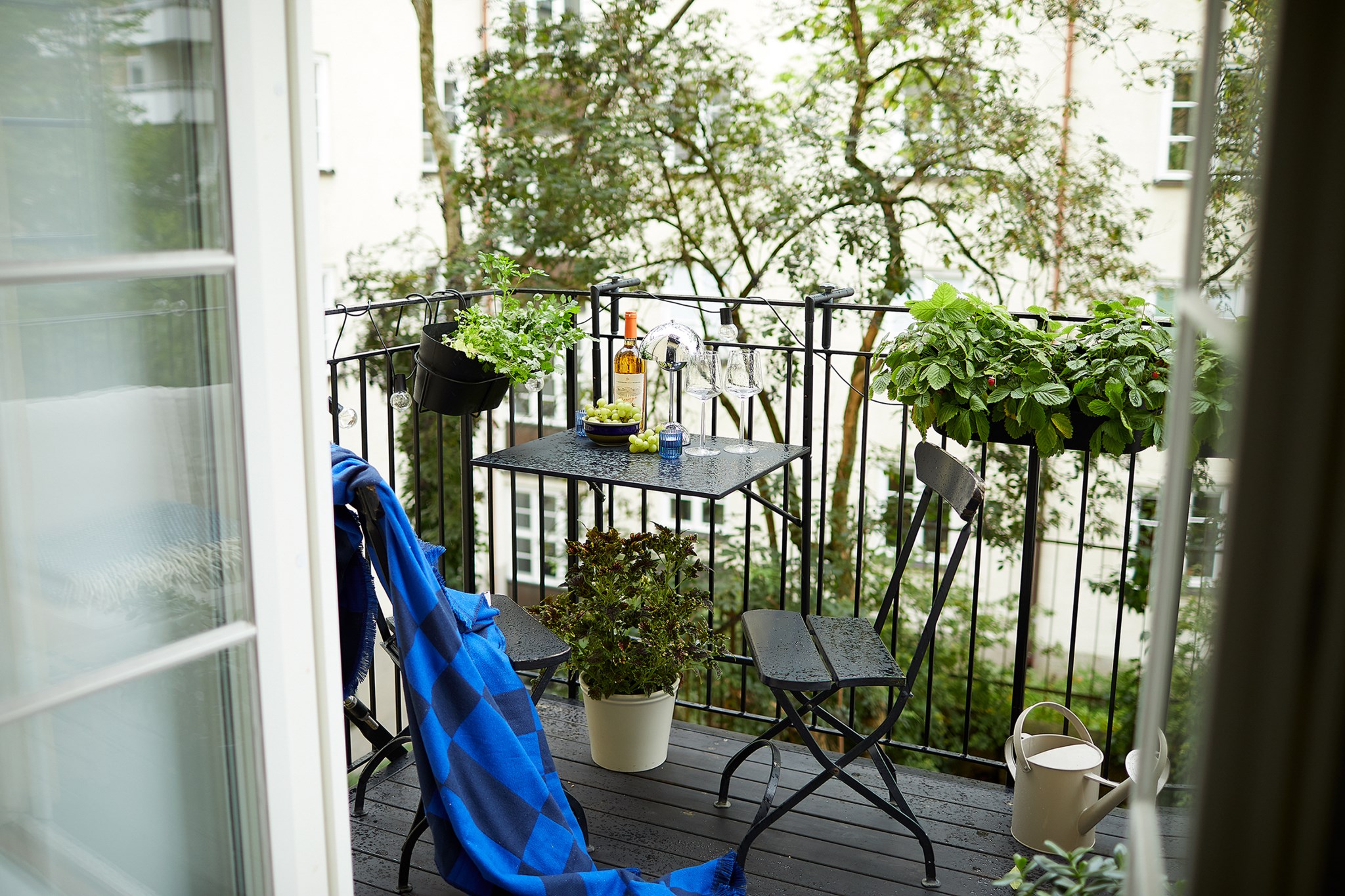 Sommartid utökas bostadsytan och mycket tid spenderas här på den ljuvliga balkongen. Utanför möts du av grönskan från den tysta och mysiga innergården. Här finns gott om plats för både balkongmöbler och planteringar.