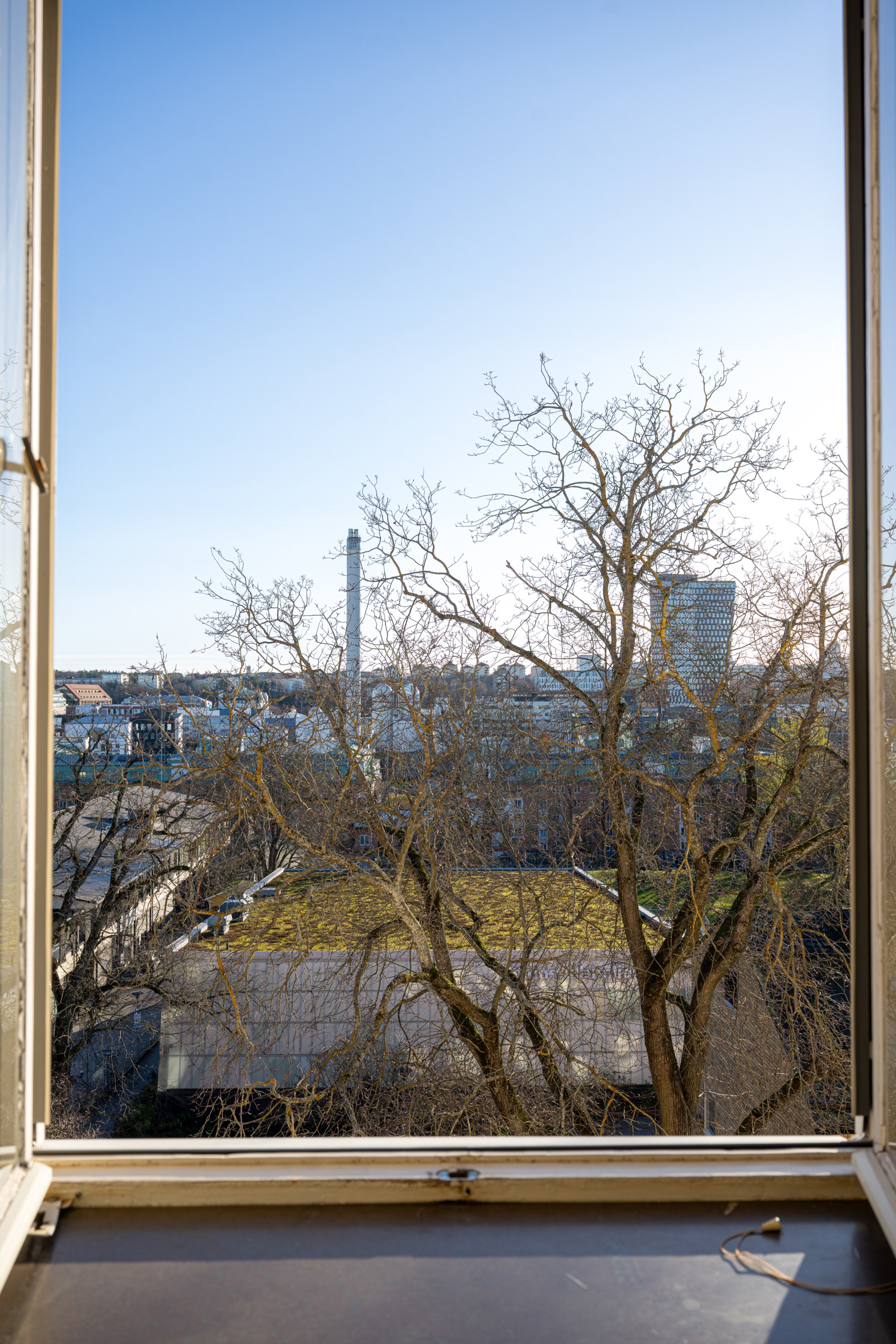 Unik möjlighet att skapa ditt drömboende med milsvid panoramautsikt över gröna trädkronor i förgrunden, takåsar, himlen som fond och vidare över Hammarbybacken, Stockholm One och Skanstullsbron. Att följa årstidernas växling härifrån är någonting alldeles extra. Bostaden är genomgående med generösa fönsterpartier som i kombination med smart planlösning skapar en härlig rymd med rikligt ljusinsläpp oavsett årstid. Ytan är luftig och ytterst välplanerad med stort sällskapsrum med plats för soffa, matplats och TV-möbel. Fint ljus kommer in från de två höga fönstren och rummet vetter i fritt söderläge med milsvid utsikt. Funktionellt kök med fönster mot gård. Väldisponerat och rogivande sovrum. Kaklat badrum med klinkergolv och dusch. Bra förvaring i flertalet garderober.
