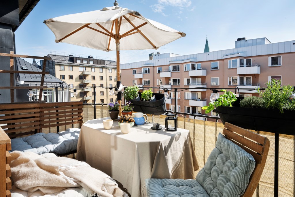 Det finns även en fin gemensam innergård med grill och utemöbler som går att boka på sommaren, det finns även en liten sandlåda med leksaker till de minsta.