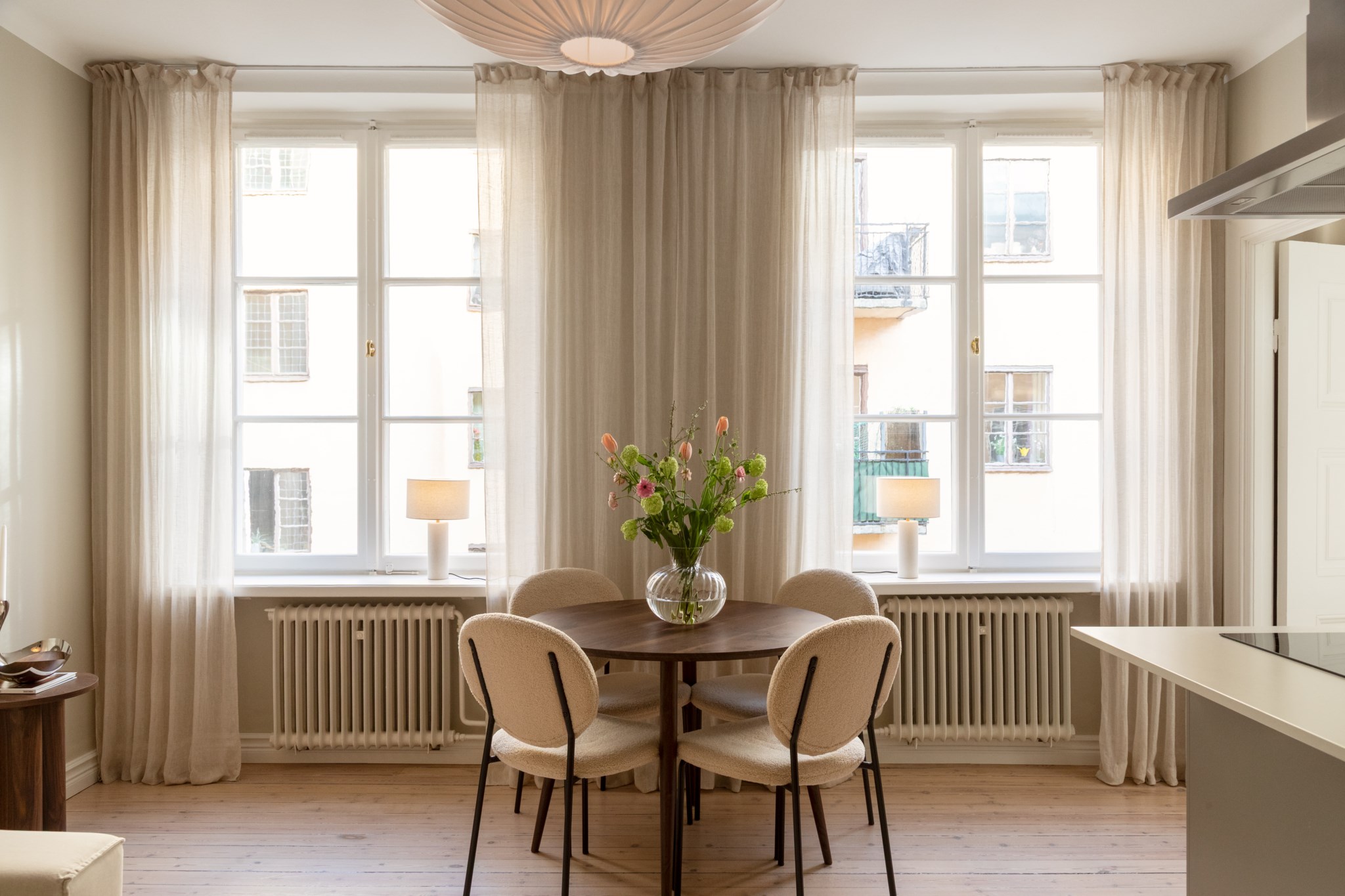 Lägenheten är smakfullt och genomtänkt renoverad till absolut toppskick. Varje hörn är utformat med precision och harmoni, med stilsäkra materialval och sobra kulörer som samspelar med bevarade, vackra attribut från byggåret. Här får du ett boende som inte bara är funktionellt utan också estetiskt tilltalande. Här bevaras originaldetaljer såsom vackra originalgolv i furutiljor, högt till tak, snickerier samt stora spröjsade fönster och djupa fönsternischer med mässingsdetaljer som skapar ett enastående ljusinsläpp.