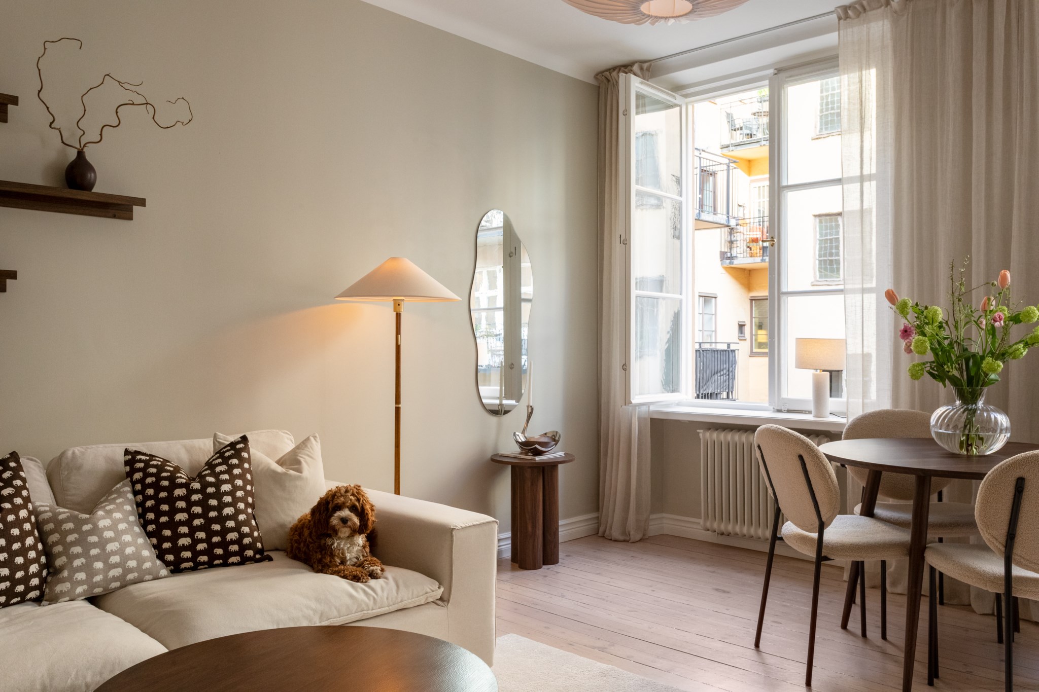 Varmt välkommen till ditt drömboende rikt på såväl känsla som funktion och med en atmosfär som slår det mesta! Denna eleganta och väldisponerade tvåa om 38 kvm, belägen högt upp i fastigheten, är det perfekta valet för den som söker en unik möjlighet att känna pulsen från stadslivet samtidigt som du kan dra dig tillbaka till lugnet i din egen privata sfär här i 1920-talsidyllen och den vackra parkmiljön på Breitenfeldsgatan med grönskande träd, gräsmattor och fontän.