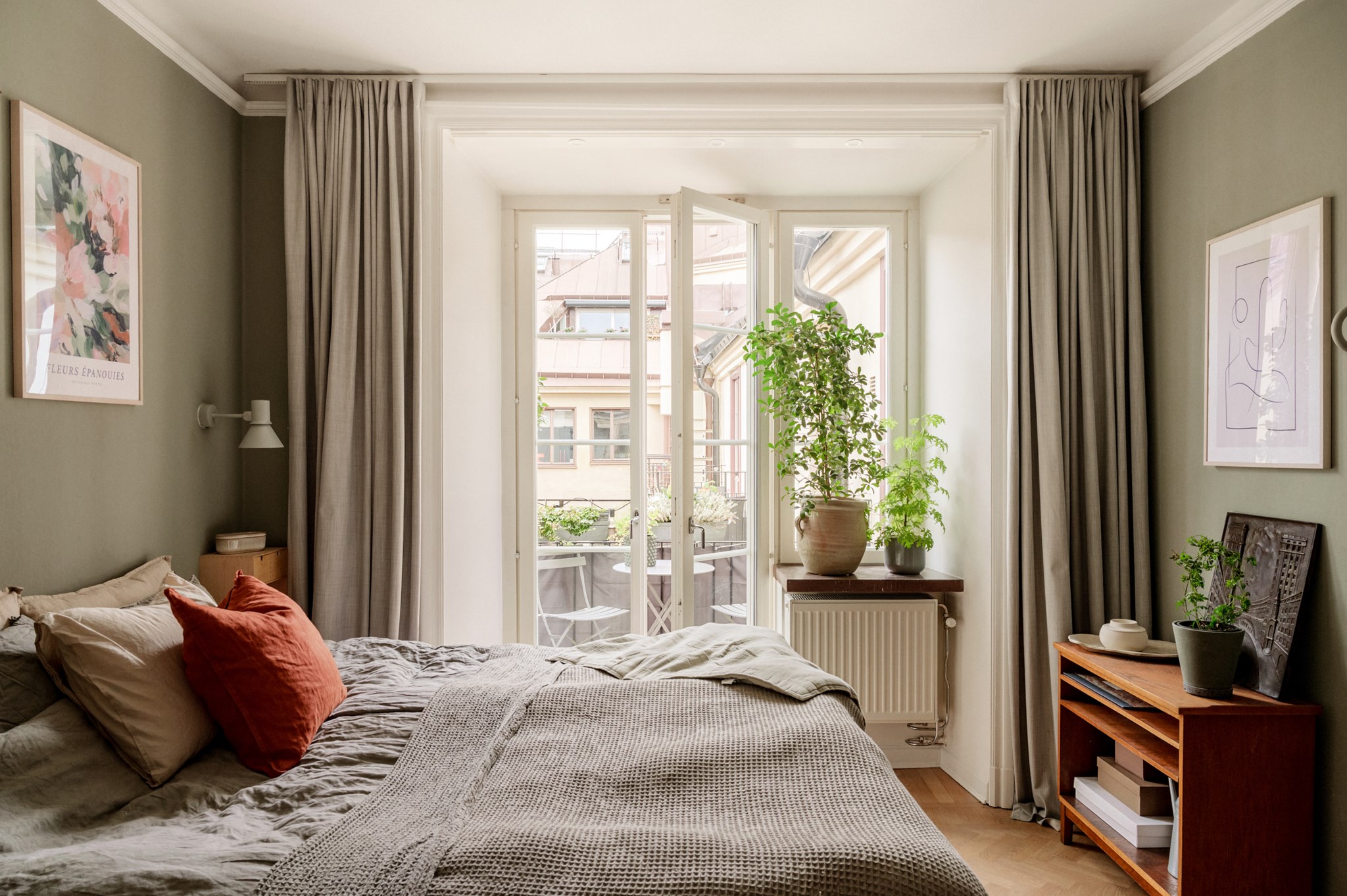 - Sovrum 2 med plats för säng och ytterligare möblemang. Bra förvaring i garderob och i serveringsskåp från byggåret. Även här är det utgång till balkongen.