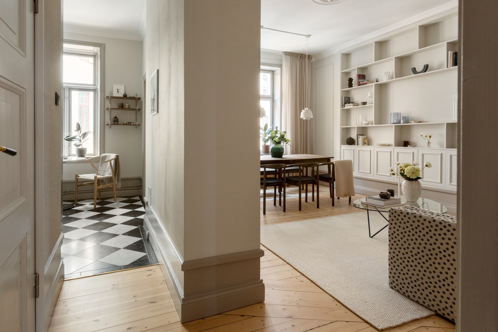Två trappor upp, mellan två tysta innergårdar mitt i stadens puls, väntar en genomtänkt och varsamt renoverad trea där sekelskiftets själ möter modern komfort. Här bor du tyst och skyddat med gårdar på båda sidor, samtidigt som city, Jarlaplan och Östermalm ligger runt hörnet.