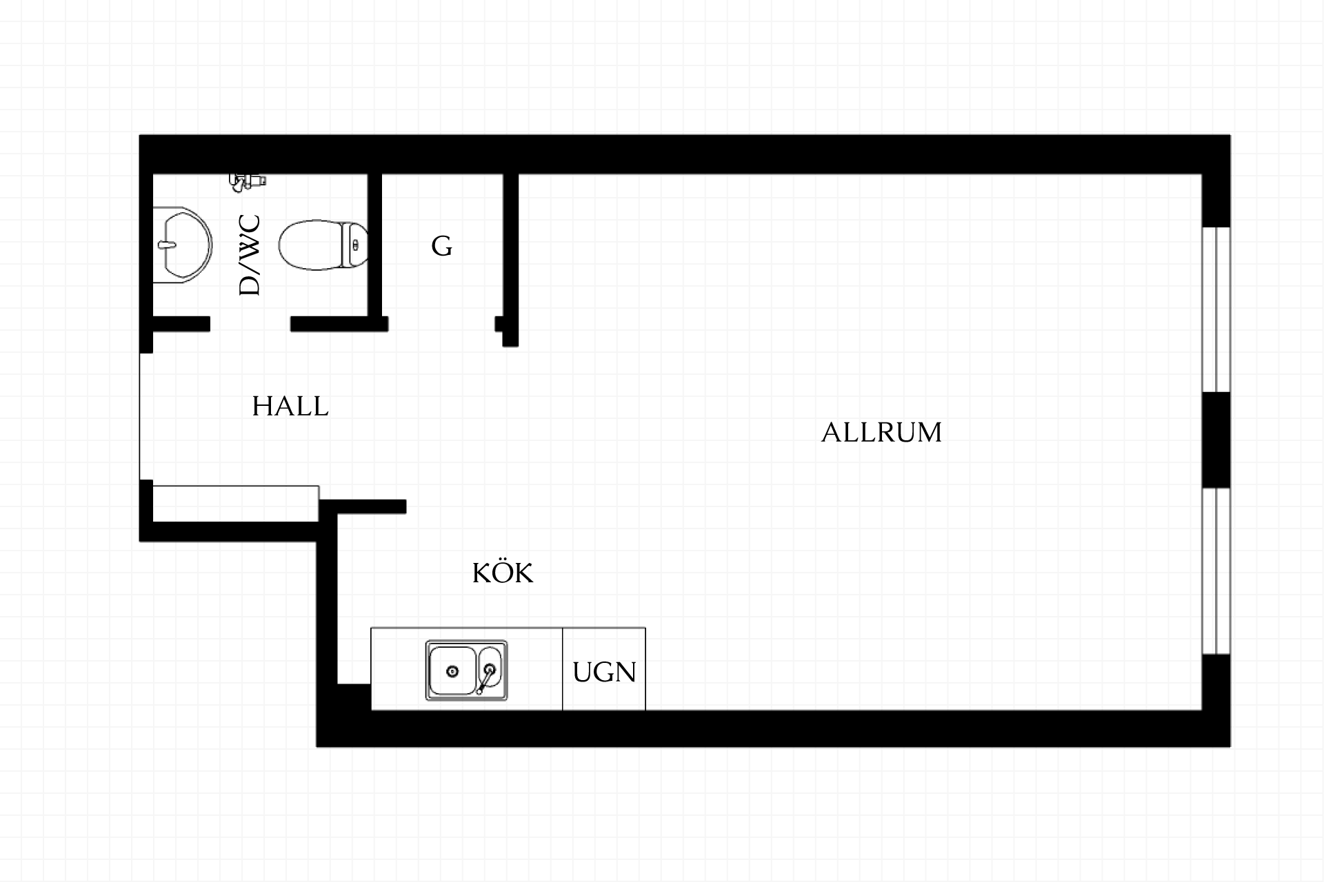 1 rum och kök