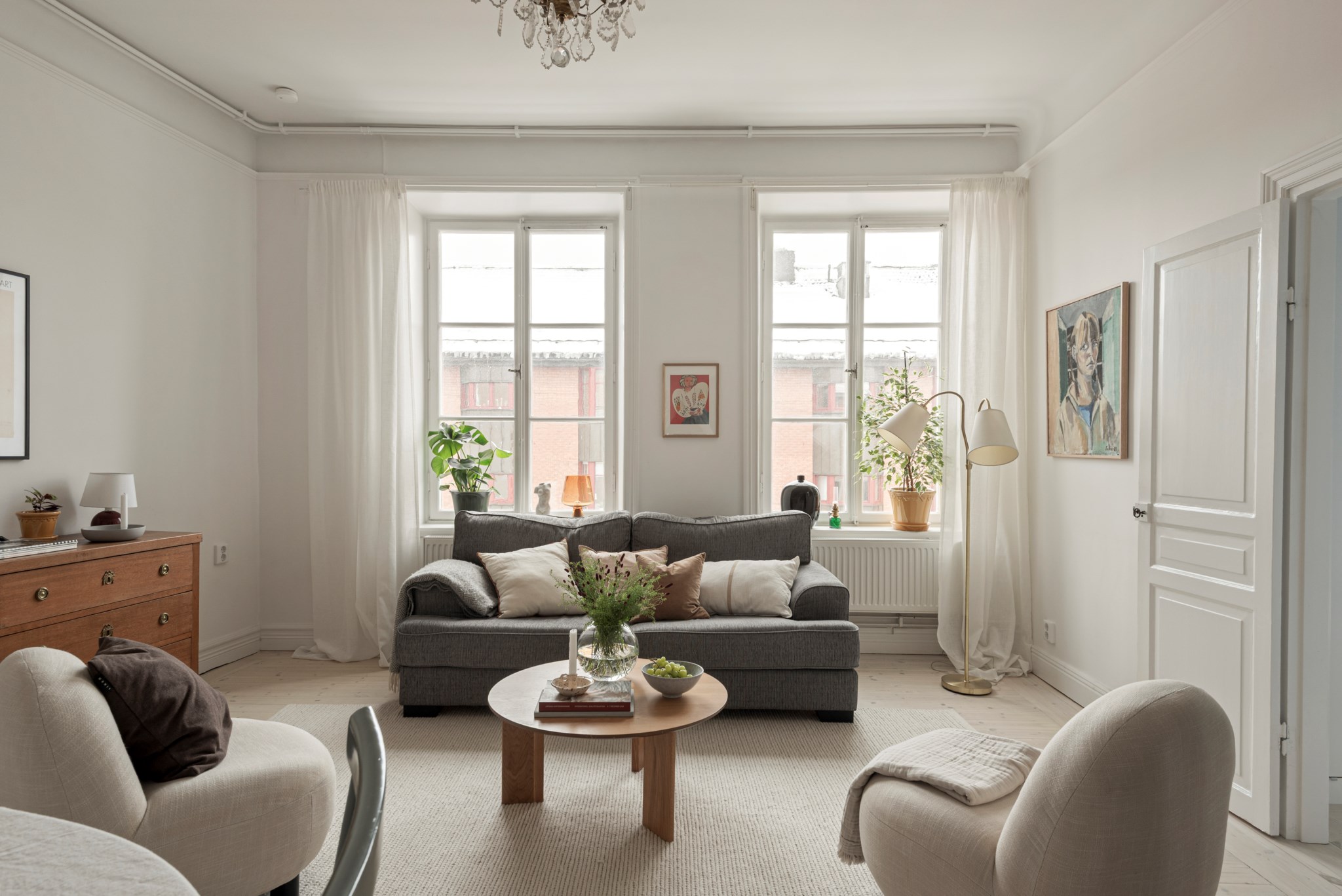 Här erbjuds magiskt sociala ytor med en planlösning som gjort för hemmamiddagar och mingel med familj och vänner! Bostaden är varsamt och stilfullt renoverad med sober färgsättning och stilfulla materialval samtidigt som flertalet detaljer från byggåret är bevarade såsom generös takhöjd om 3 meter, vackra furugolv, speglade dörrar och höga fönster som låter ljuset flöda in.
