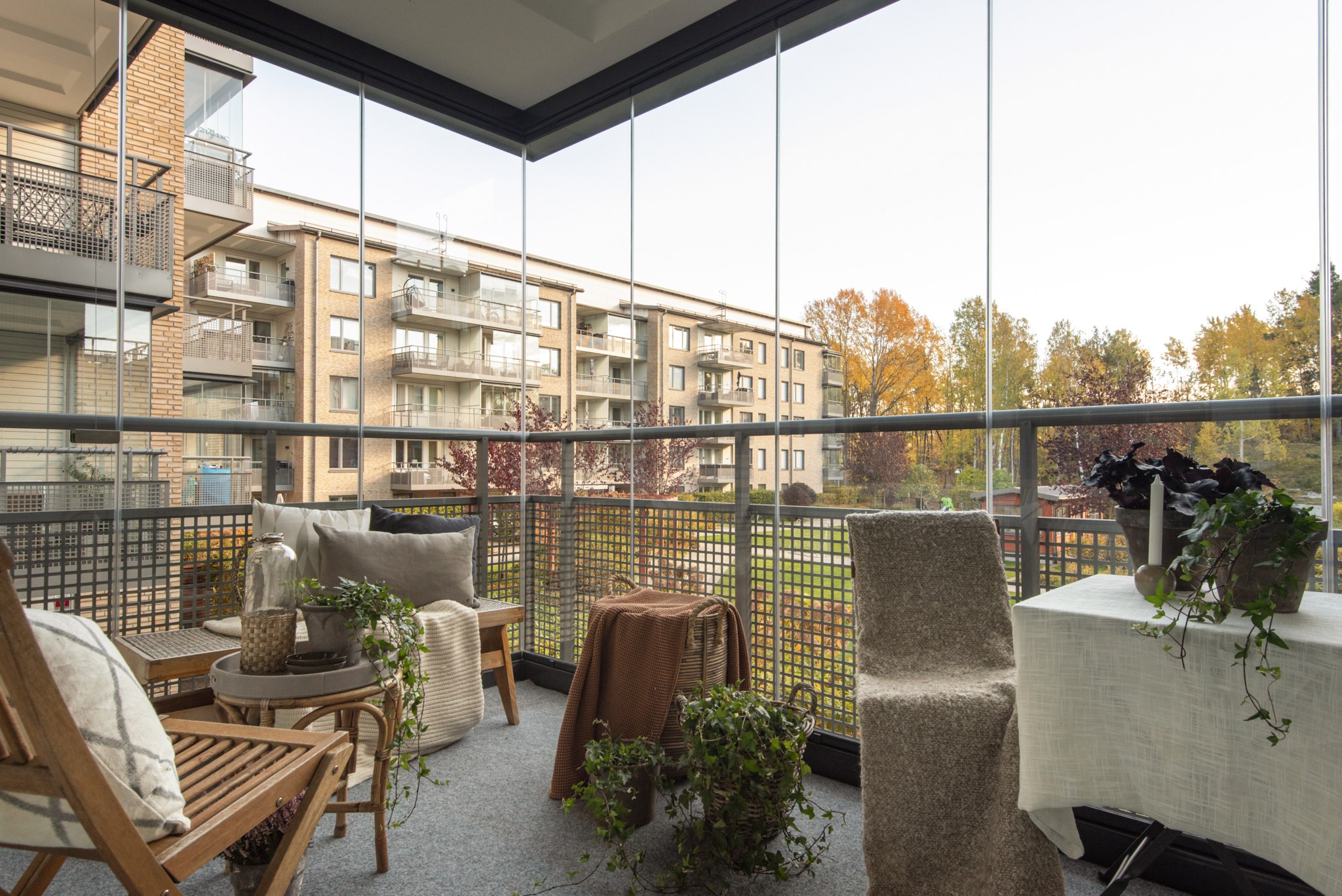 Två stora balkonger, en från köket och en från vardagsrummet.