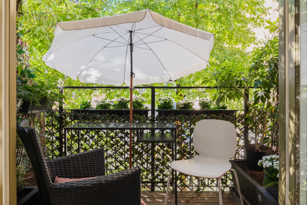 - Balkong i öster (sol från ca kl. 06:00-12:00) med plats för bord, stolar och växter.