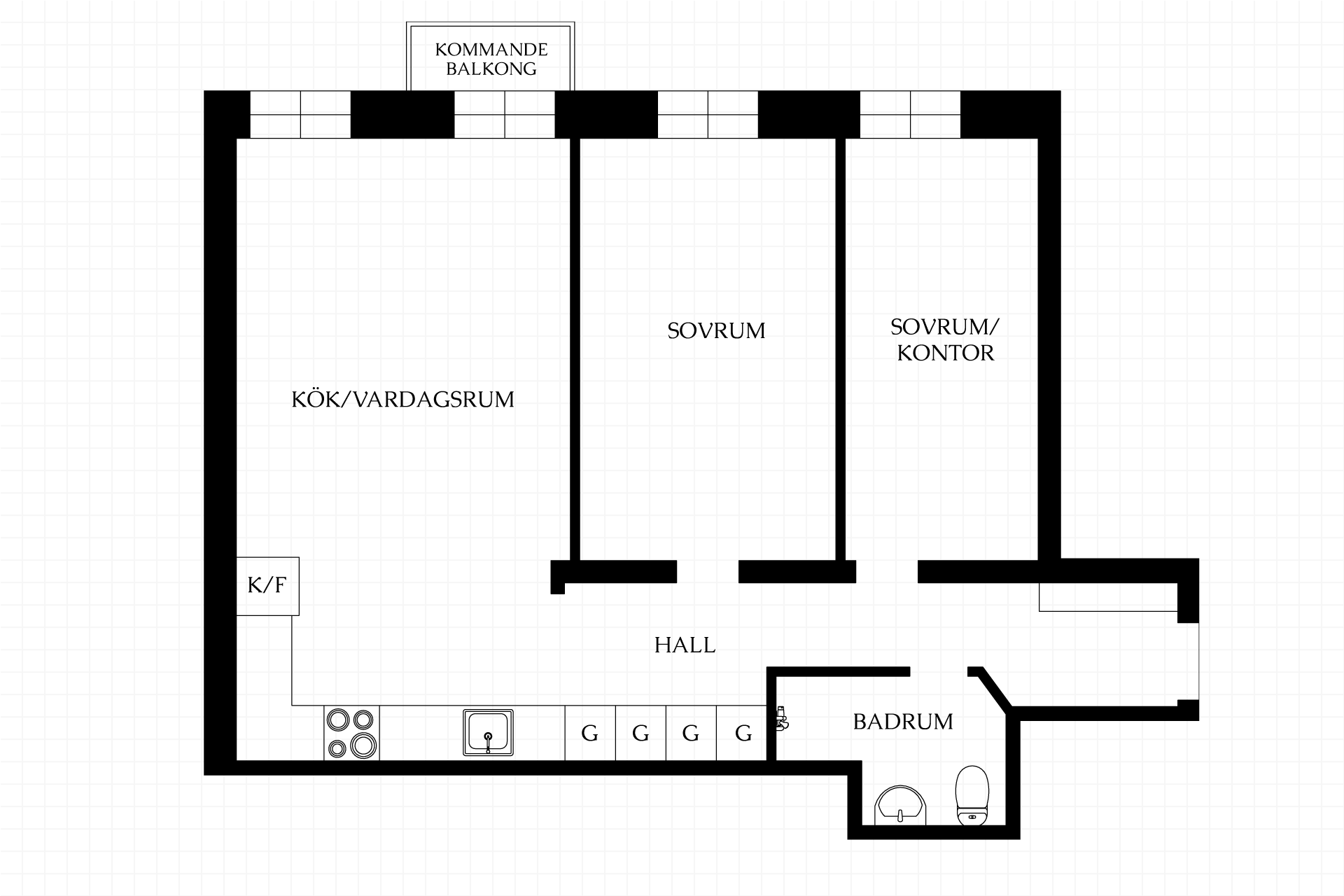 Balkong med utgång genom vardagsrummet är planerat att byggas i mars (se planlösning).