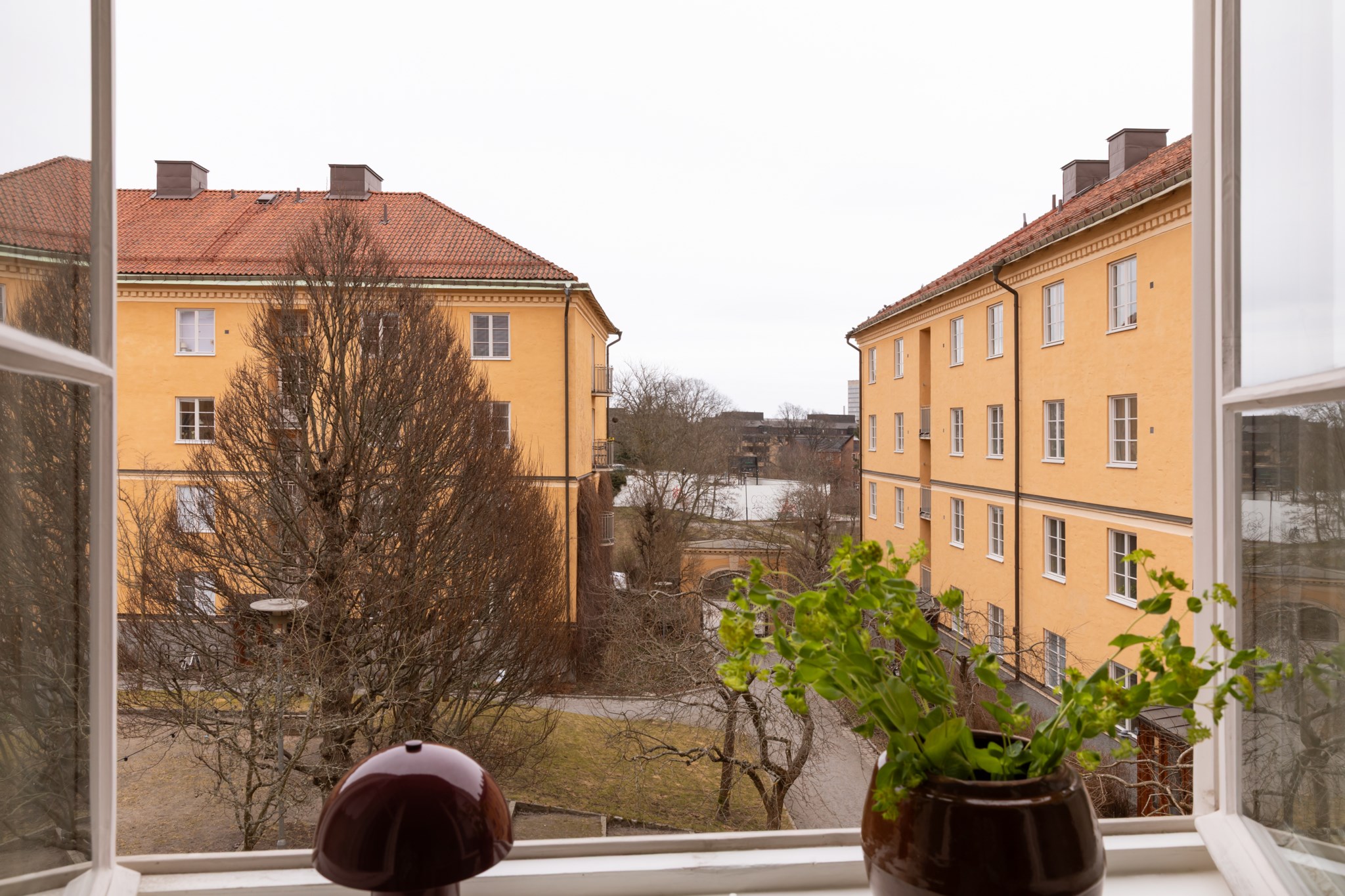 Kvarteret Metern, där denna adress är belägen, bär på en fascinerande historia. Det skapades under 1920-talet när arkitekten Per Olof Hallman, inspirerad av medeltida stadsplanering med torg och oregelbundna gatunät, formade området. Husen och innergårdarna byggdes med tanke på terrängens naturliga form och ett öppet ljusinsläpp, vilket ger kvarteret dess tidlösa karaktär. Fastigheten, uppförd 1926 av HSB, speglar tidens kooperativa anda – med entréer som vetter mot en rymlig innergård för att främja gemenskap och trivsel, en tanke som än idag präglar atmosfären här.