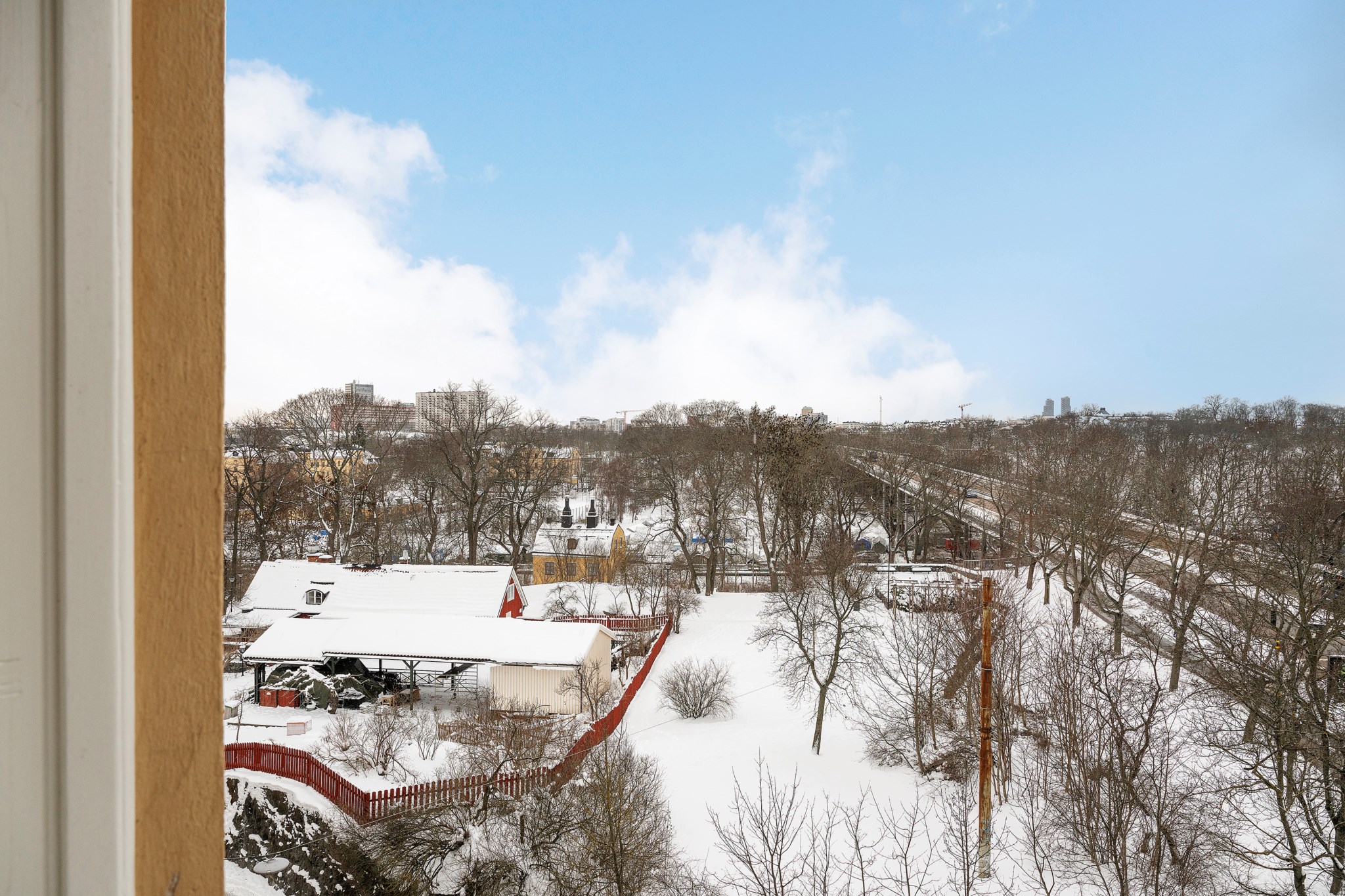 Högt upp i huset, med fri sikt över Pålsundsparken, Långholmen och ett böljande taklandskap av trädtoppar, väntar denna välplanerade 1,5:a med en påtaglig känsla av rymd och lugn. Läget på fjärde våningen ger en tydlig himmelskontakt och ett ljus som får bostaden att kännas större än sina kvadrat.