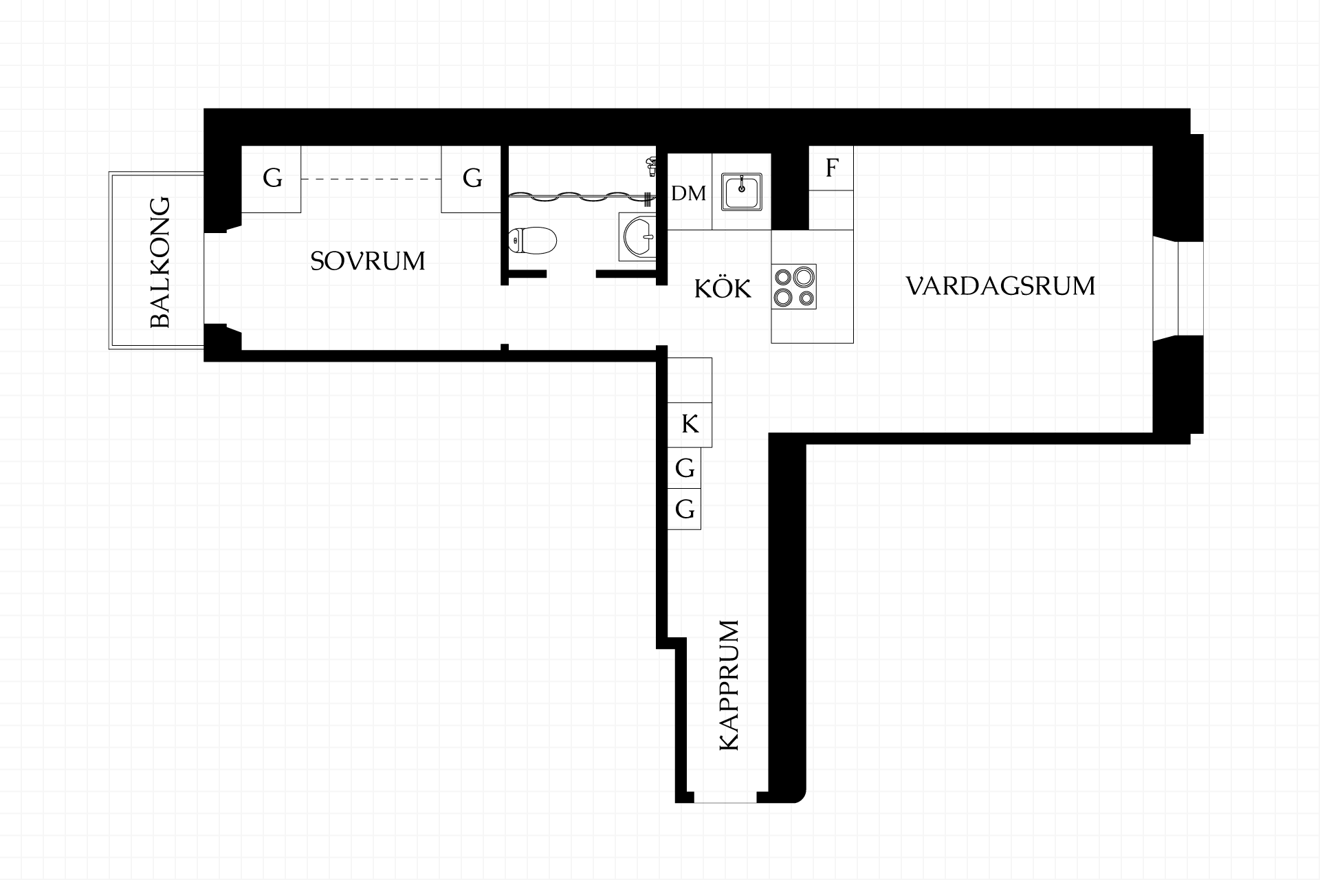 Planlösningen är social med en naturlig koppling mellan kök och vardagsrum, vilket skapar goda förutsättningar för umgänge och vardagsliv. Sovrummet är beläget mot den lugna innergården och erbjuder en avskild och tyst miljö. Härifrån nås även balkongen, som vetter mot gården – en stillsam plats för en kopp kaffe eller en paus från stadens tempo.