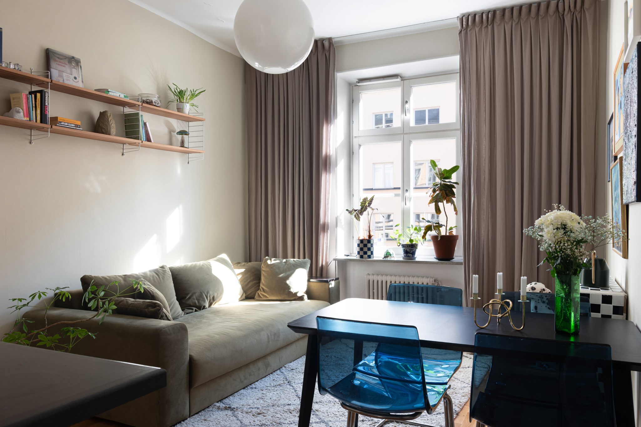 Välkommen till denna välplanerade tvårummare i ett vackert 1880-talshus i Hornstull. Här möts tidstypiska detaljer och en modern, grafisk känsla i en genomtänkt helhet. Bostaden präglas av fina snickerier, generös takhöjd och smakfulla färgval som ger en stilren och personlig karaktär.
