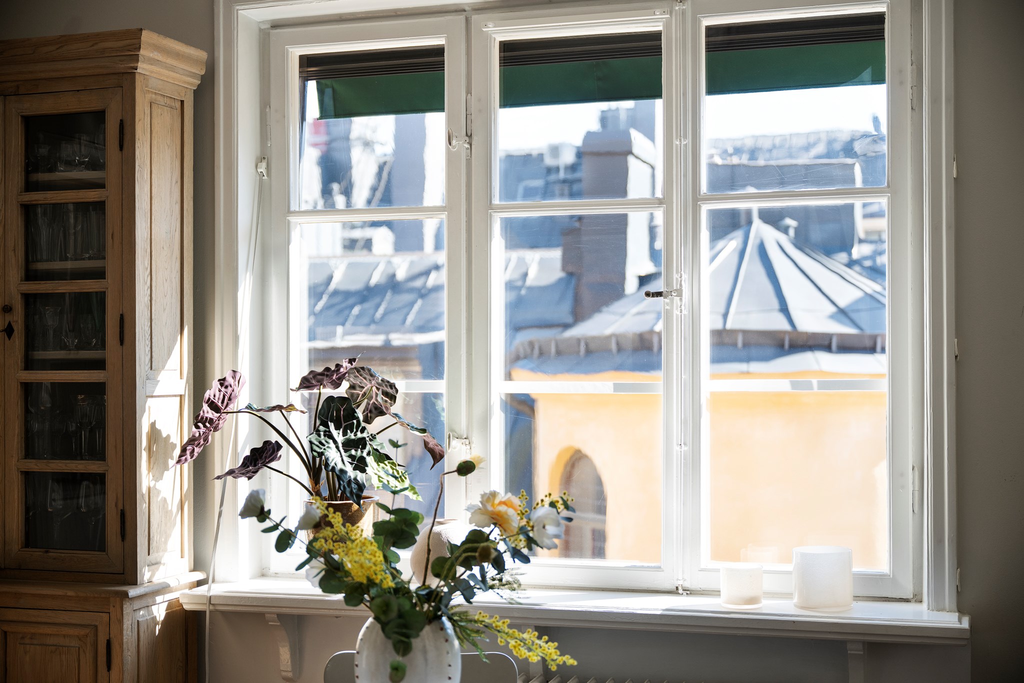 Högt upp i en vacker fastighet uppförd i slutet av 20-talet hittar ni här ett lättmöblerat och trivsamt hem med ett strålande ljusinsläpp samt en fin utsikt mot omgivande takåsar. Bostaden har bevarade originaldetaljer från byggnadsåret och härliga sällskapsytor. Från köket har man pardörrar ut till balkongen som vetter i sydostligt läge och som under sommarmånaderna erbjuder sol från morgon till eftermiddag.