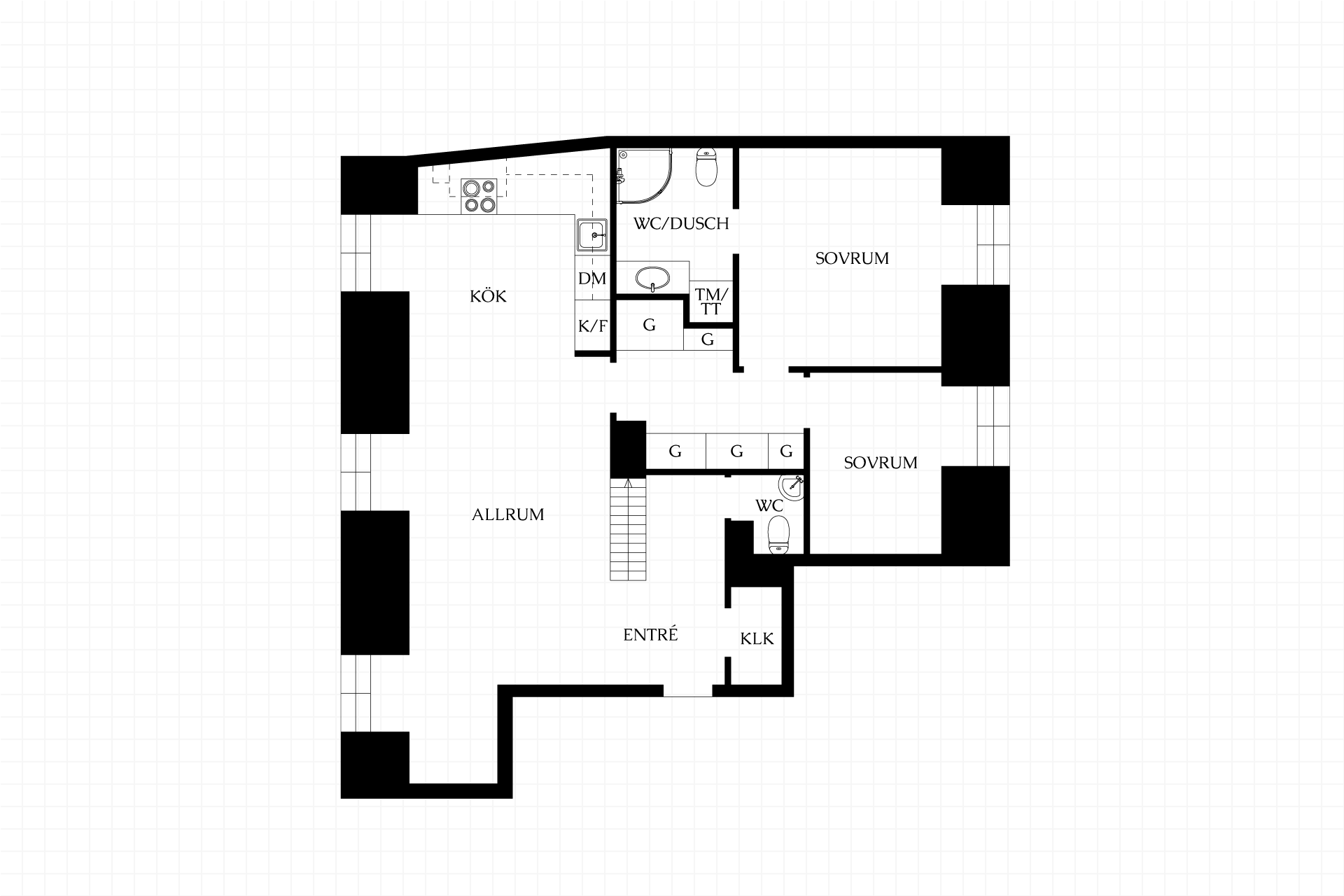 3 rum och kök, varav 2 sovrum