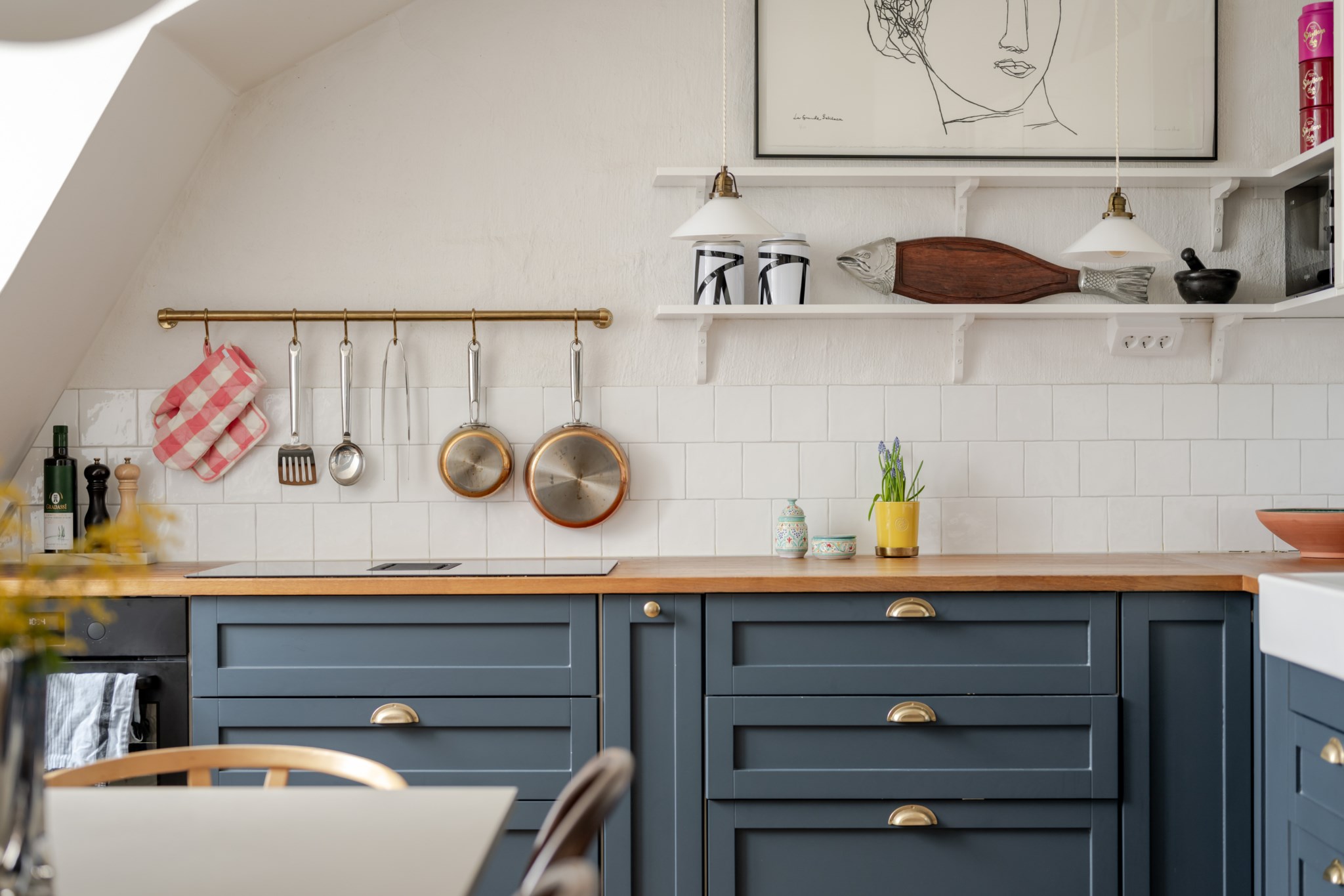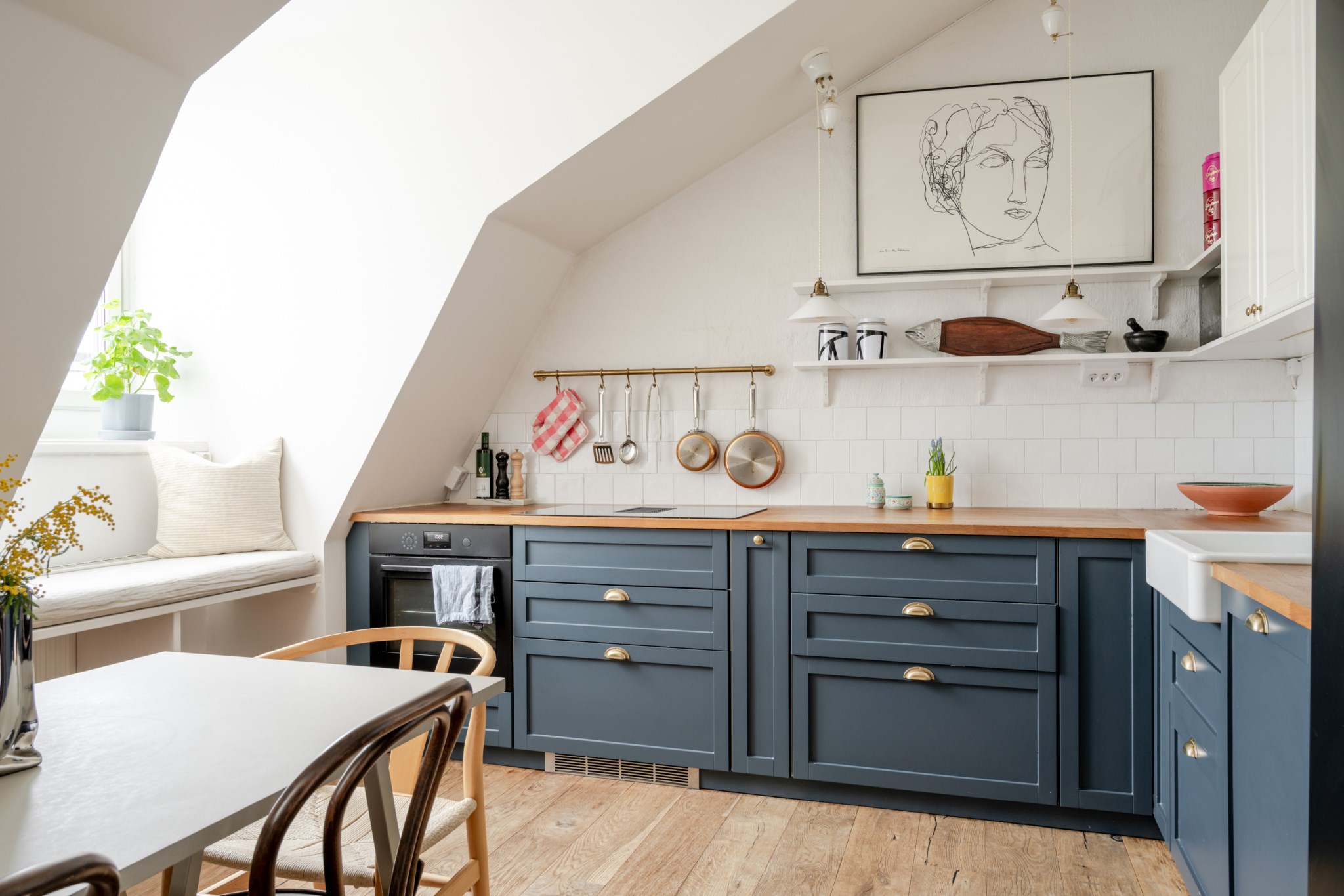 Välkommen till en ombonad och hemtrevlig vindsvåning om 80 ljusa och välplanerade kvm. Öppen planlösning mellan kök och vardagsrum, två sovrum, snyggt badrum, gästtoalett och mycket bra förvaring. Stora fönsterpartier, snedtak, vackra snickerier och fina golv.