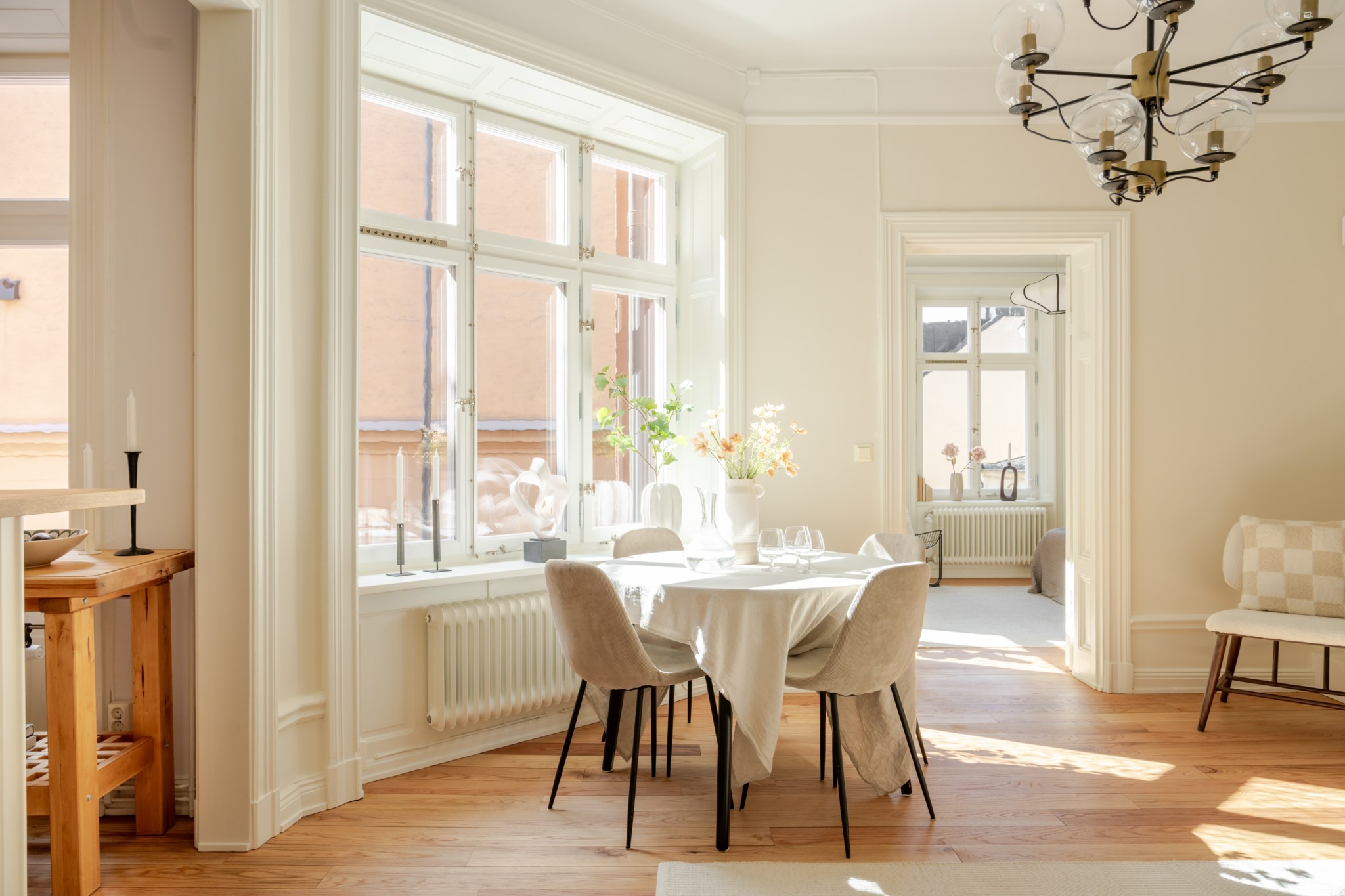 Välkommen till Kapellgränd och denna suveräna lägenhet om 54 ljusa och välplanerade kvm i mycket bra skick. De tidstypiska detaljerna är på plats såsom högt till tak, generösa ljusinsläpp, fina trägolv med höga socklar samt vackra snickerier och spegeldörrar. Stor sällskapsyta med delvis öppen planlösning mellan kök och vardagsrum. Möjlighet ska finnas att sätta in eldstad.
