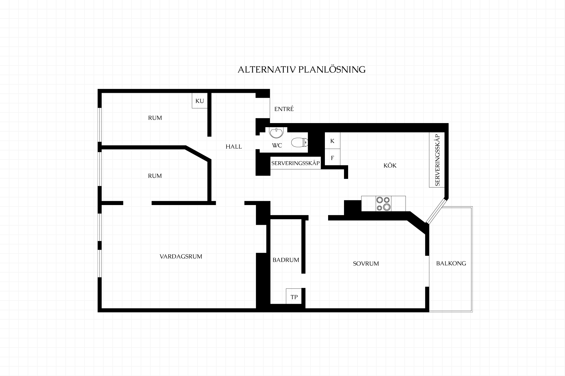 3 rum och kök, varav 2 sovrum