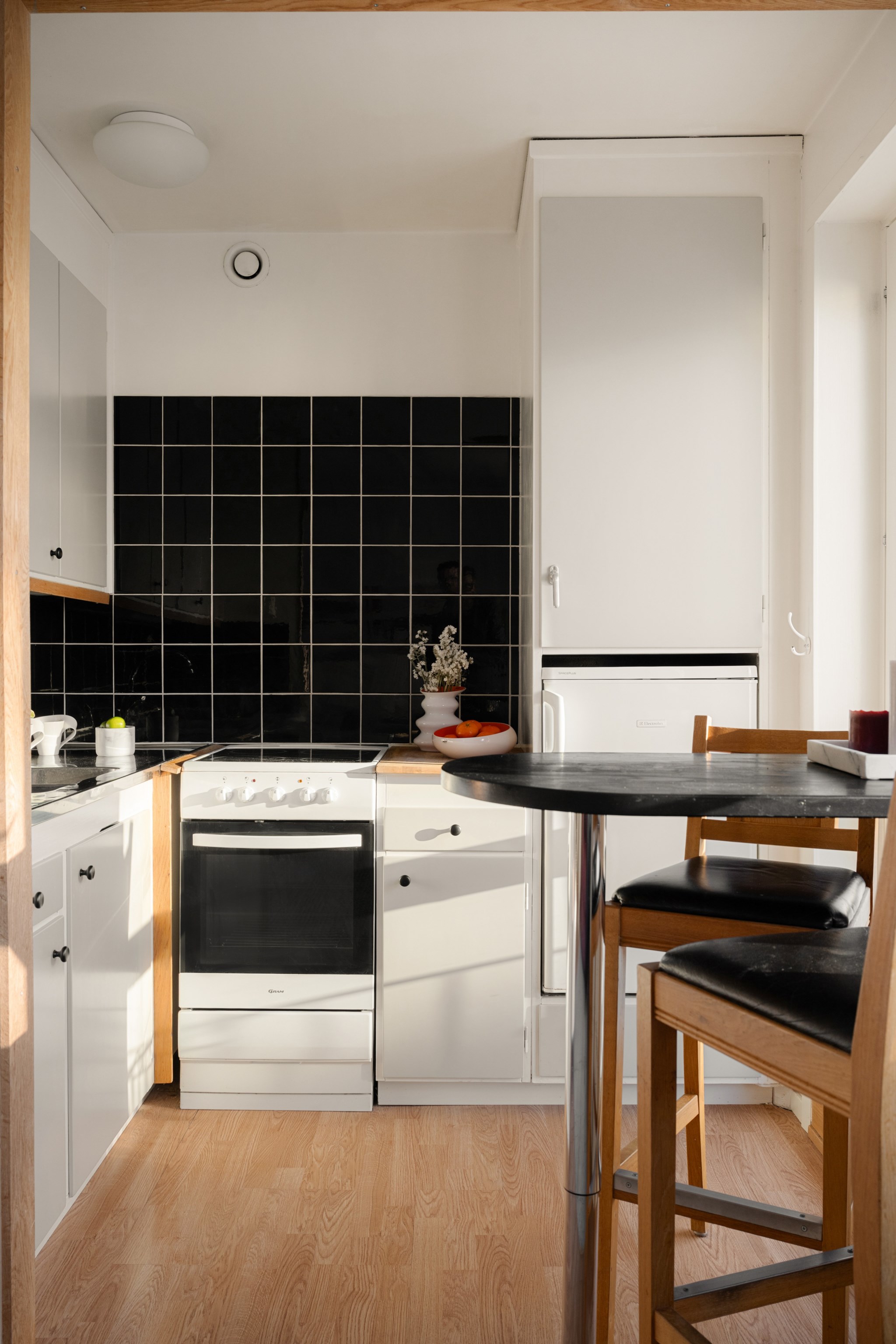 Mitt på en lummig innergård strax nedanför Vitabergsparken gömmer sig denna trivsamma etta med balkong och öppen, social planlösning. Lägenheten har ett fint ljusinsläpp från stora fönster i fil, och mellan husen mitt emot ser man Malmgårdsvägens charmiga 1800-talskåkar framför en kuliss av parkens grönska. Kvadratmeterna är extremt väl fördelade, och ypperliga förvaringsmöjligheter erbjuds i form av inbyggda garderober i både hall och passagen intill badrummet. Planlösningen gör rummet lätt att möblera med plats för både säng, soffa, matbord och arbetsyta för den som behöver.