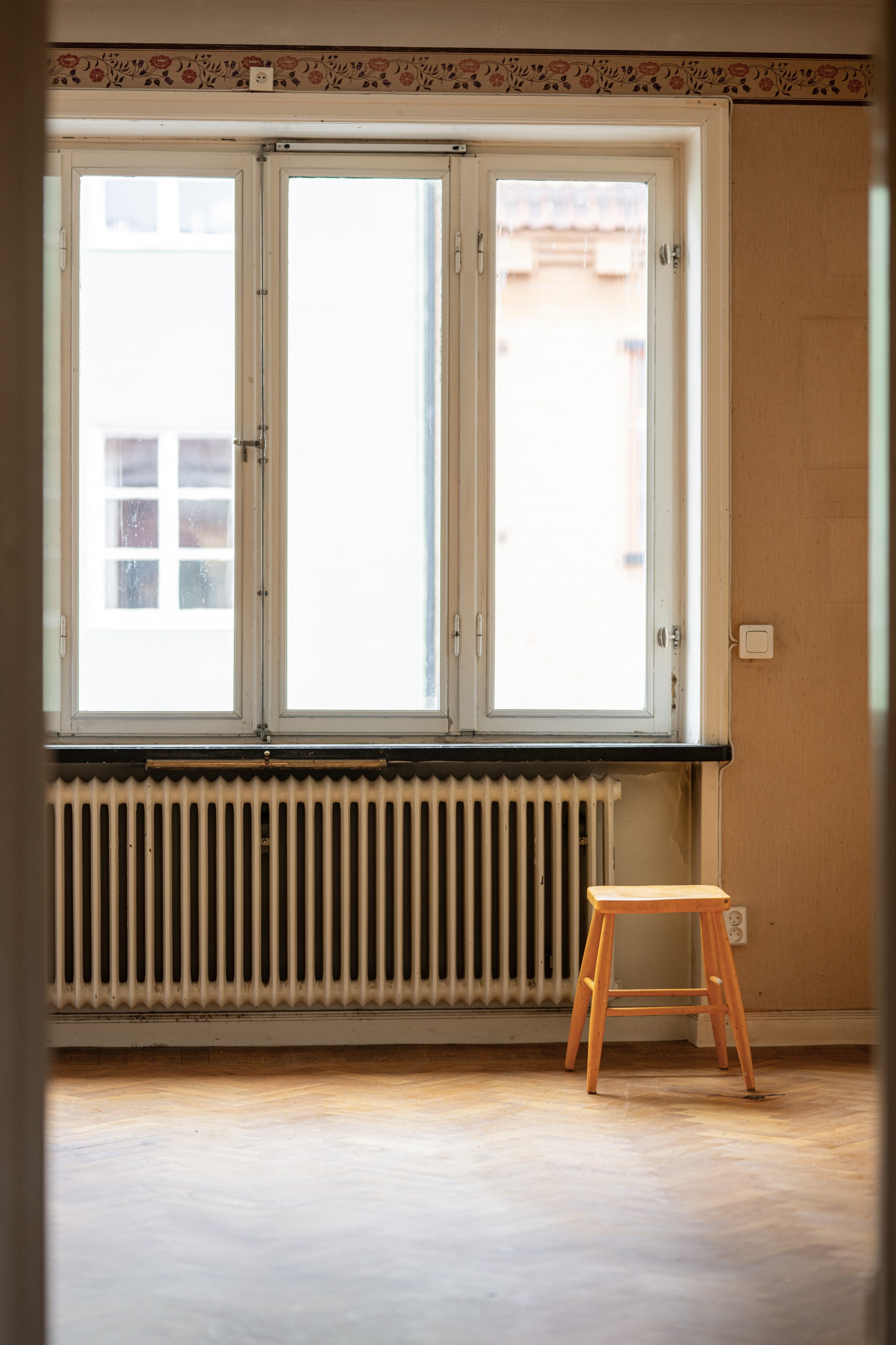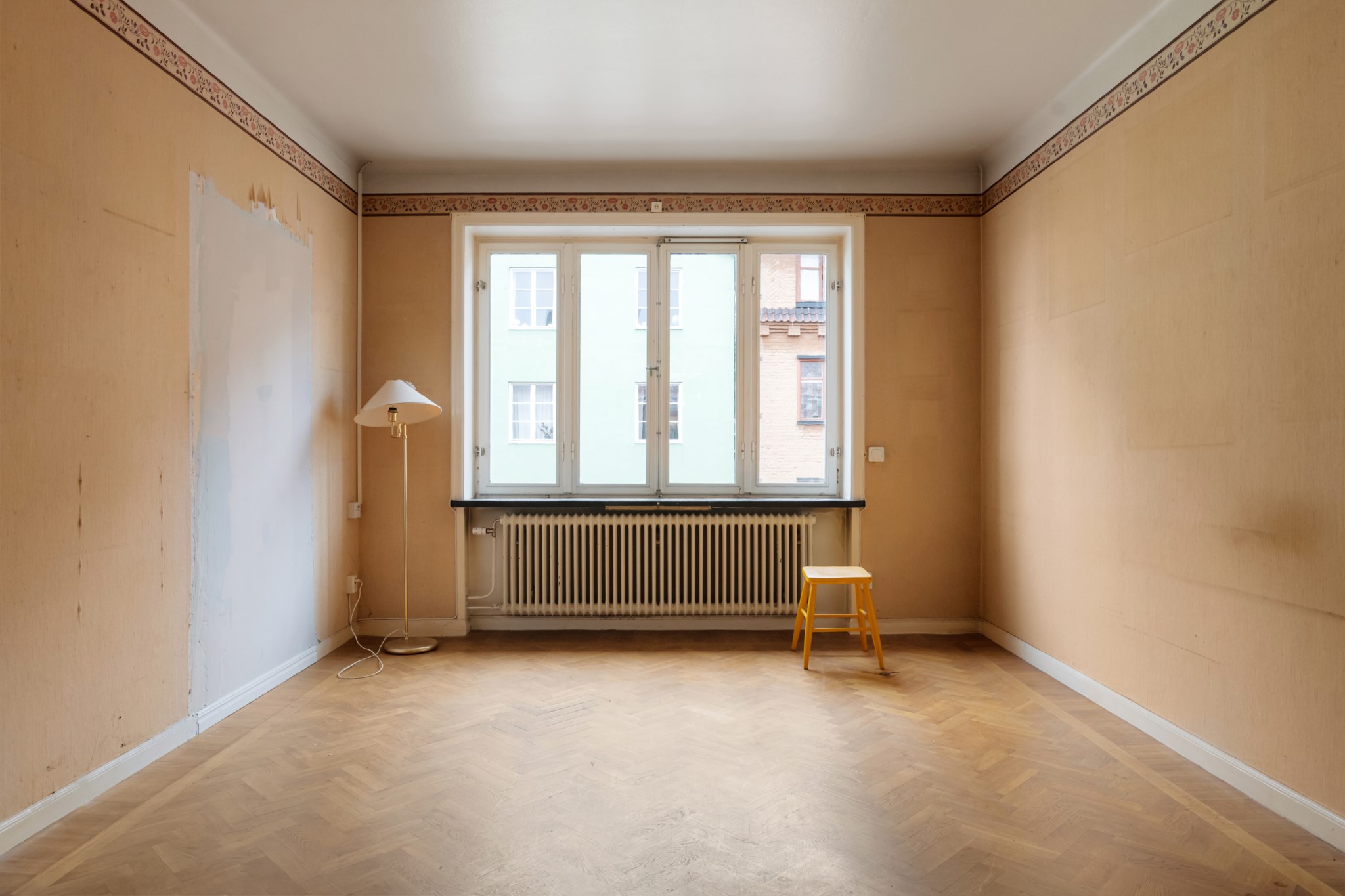 Högst upp i ett klassiskt 30-talshus, med solen strömmande in genom ett stort södervänt fönster, erbjuds nu en sällsynt chans att skapa något alldeles eget. Den här söderpärlan är ett renoveringsobjekt i ordets rätta bemärkelse – men med precis de rätta förutsättningarna: plankgolv i original, bevarade spanjoletter och ett lugnt, upphöjt läge i huset. Samtliga dörrar är bevarade, inklusive de vackra dubbeldörrarna mellan rummen på golvet ligger originalgolv.