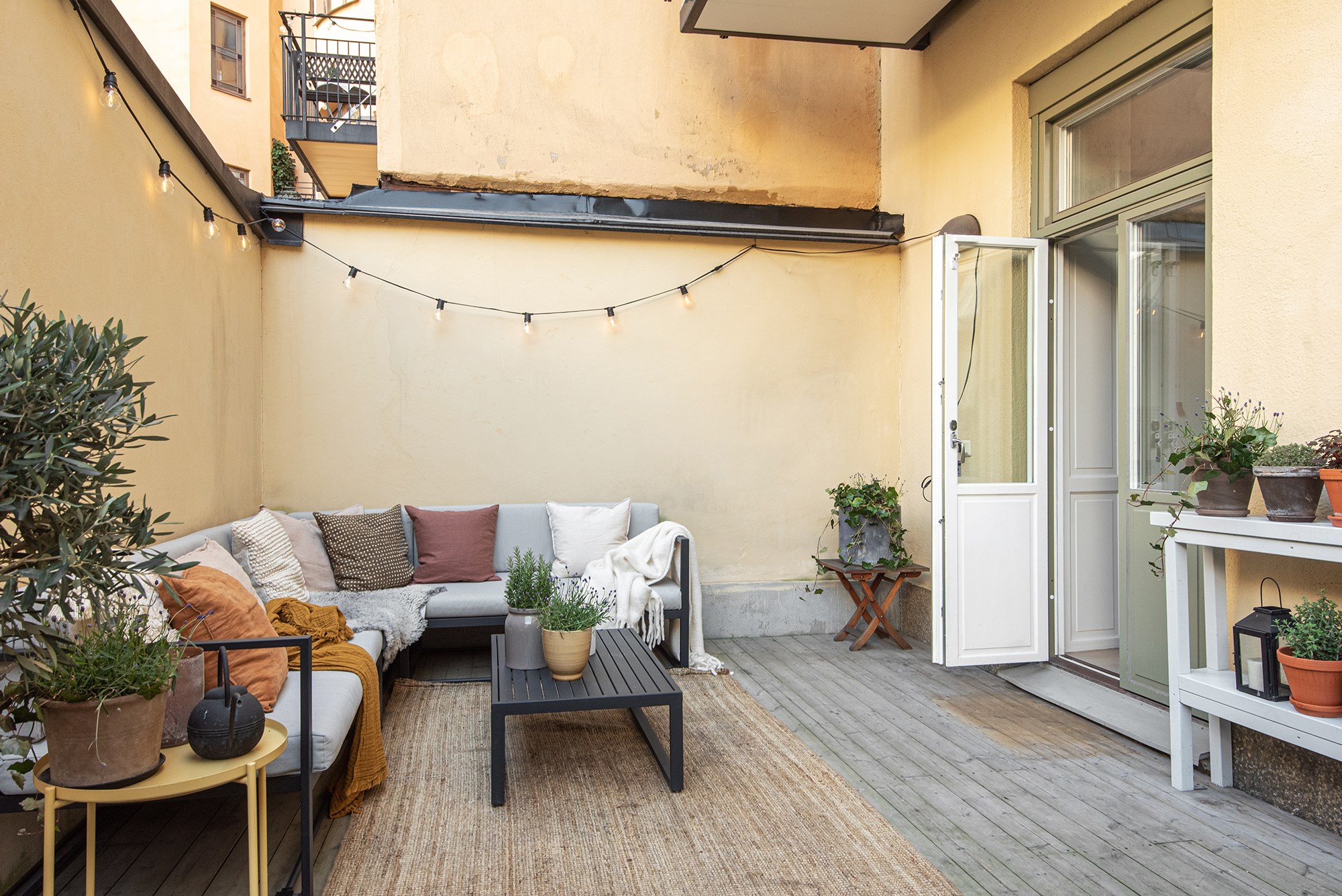 Ljuvlig altan om ca 20 kvm med eftermiddagssol. Trivsamt inramad av spaljé med klättrande murgröna och stenmur för en mycket privat känsla. Gott om plats för såväl matgrupp, loungemöbel som grill. Här finns även gott om plats planteringar för den som önskar odla sina egna örter eller blommor.