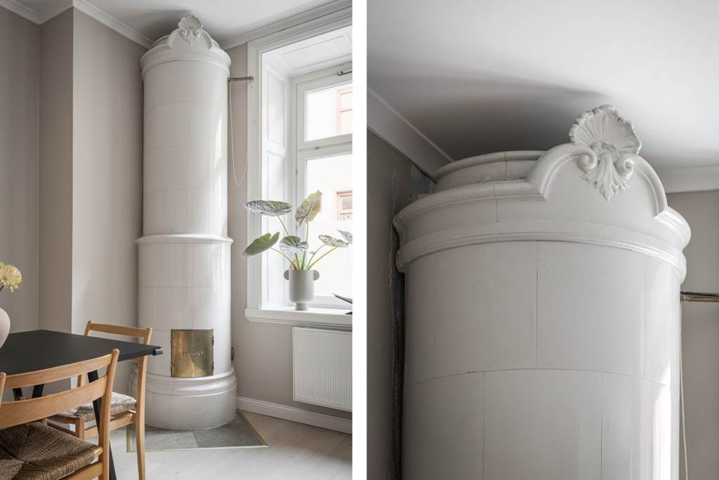 Ljuvligt sällskapsrum med halvöppen, social planlösning mot köket och två stora fönster i fil vilket skapar en fantastisk atmosfär och rymd. Fungerande kakelugn och gott om plats för såväl stor soffa, fåtöljer och TV-bänk. Generös takhöjd och höga fönster med djupa speglade nischer. Trägolv och ljusa ytskikt.