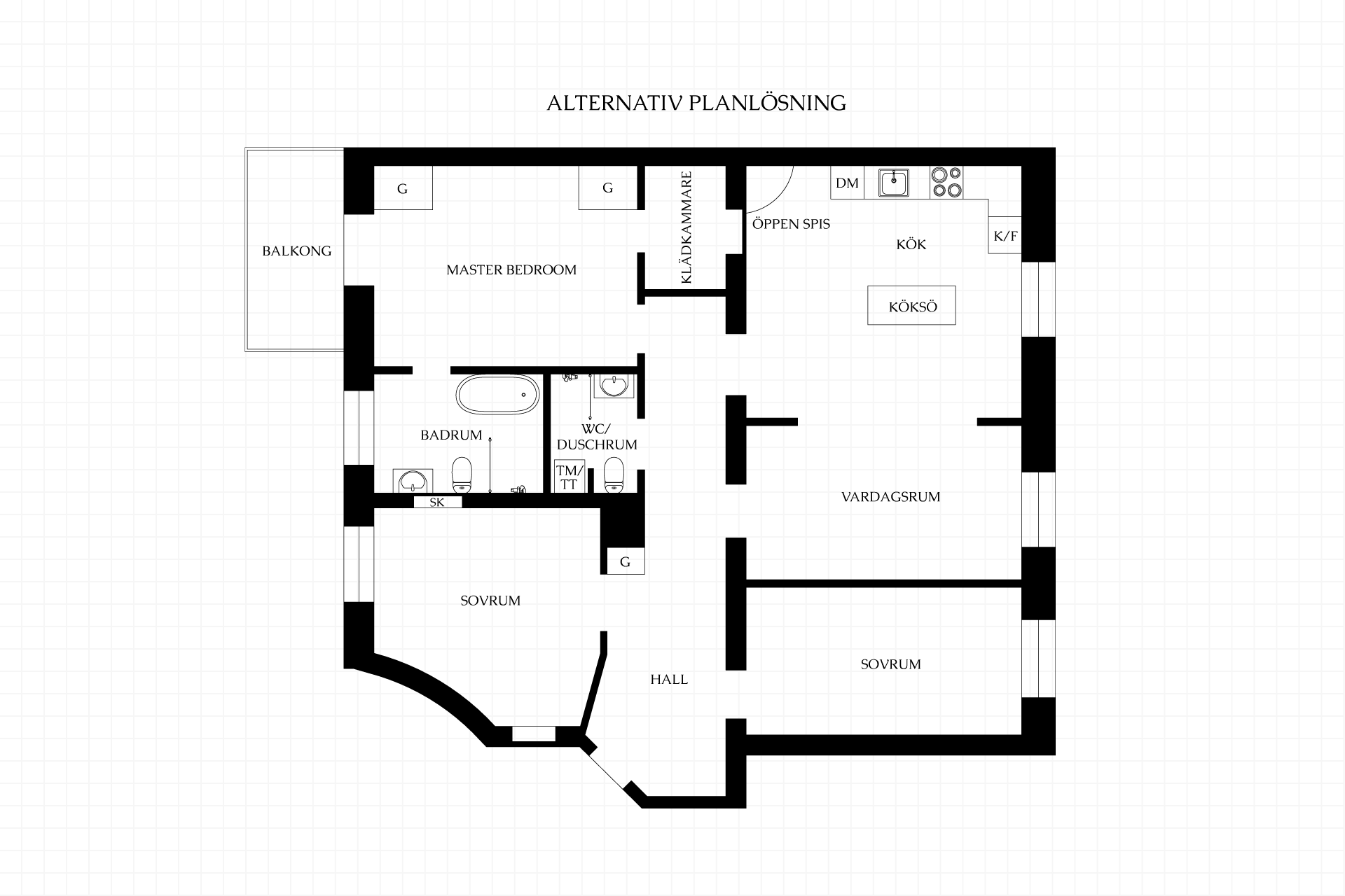 Lägenheten disponeras enligt följande: