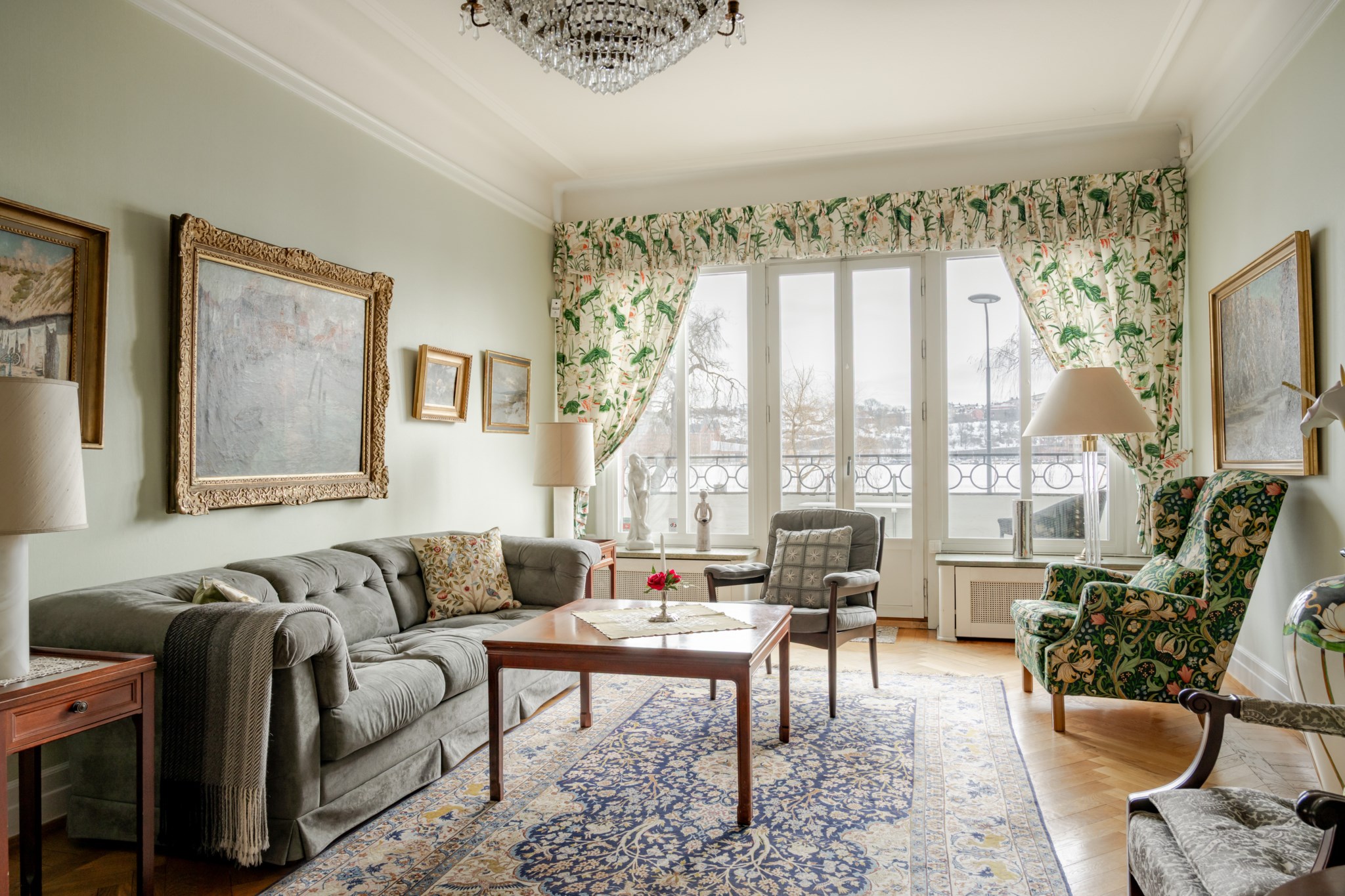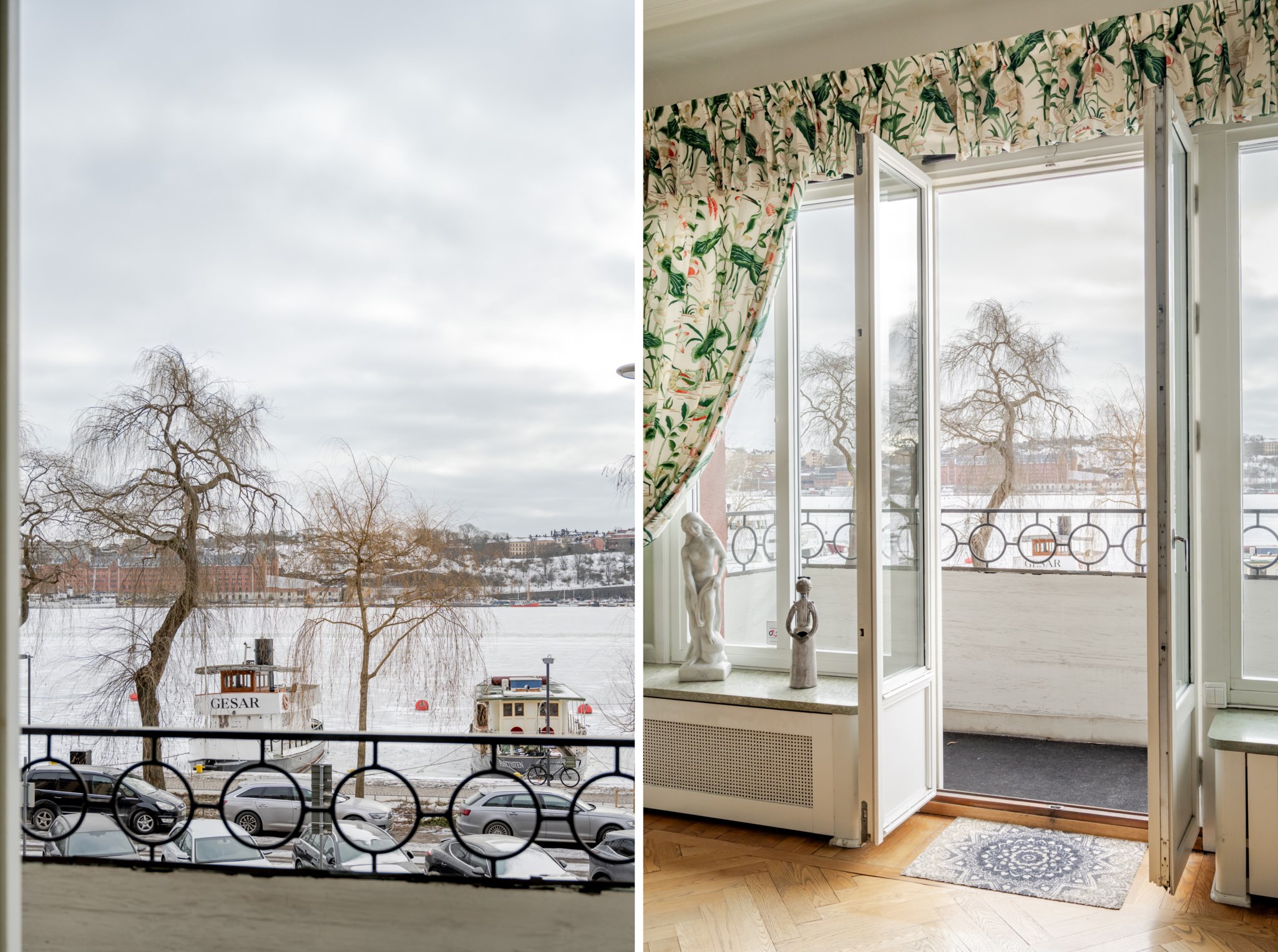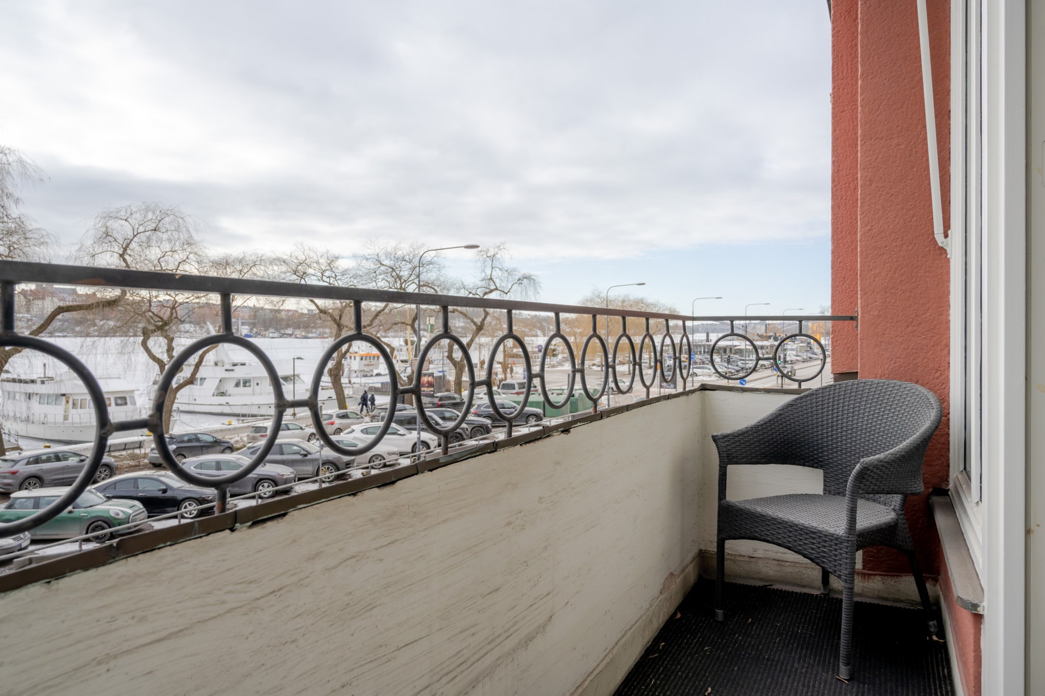 Planlösningen är klassiskt disponerad, den är genomgående från gården till Norr Mälarstrand. Stora och luftiga sällskapsytor genom matsal och vardagsrum med öppen spis och vackert fönsterparti med utgång till balkong med hänförande och vidsträckt sjöutsikt.