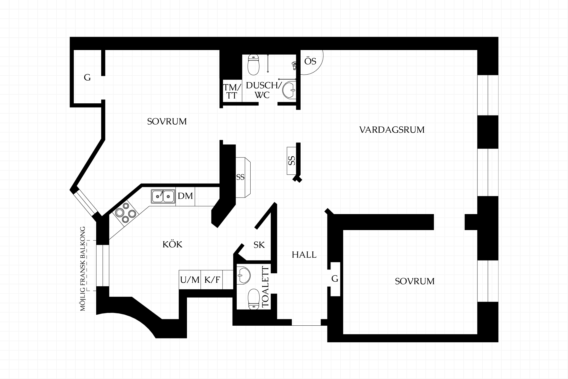 Från köket har det funnits bygglov för fransk balkong som har löpt ut för att bygget inte påbörjades i tid. Finns möjlighet att söka på nytt och vid en ny ansökan kan det utredas om det är möjligt att bygga en större balkong.
