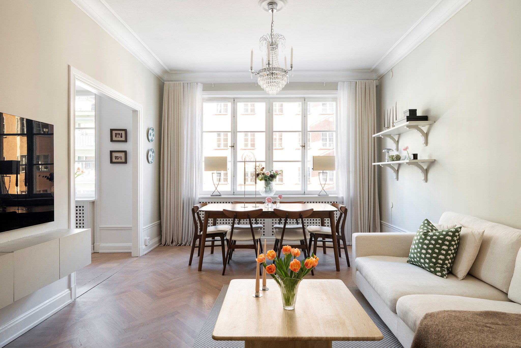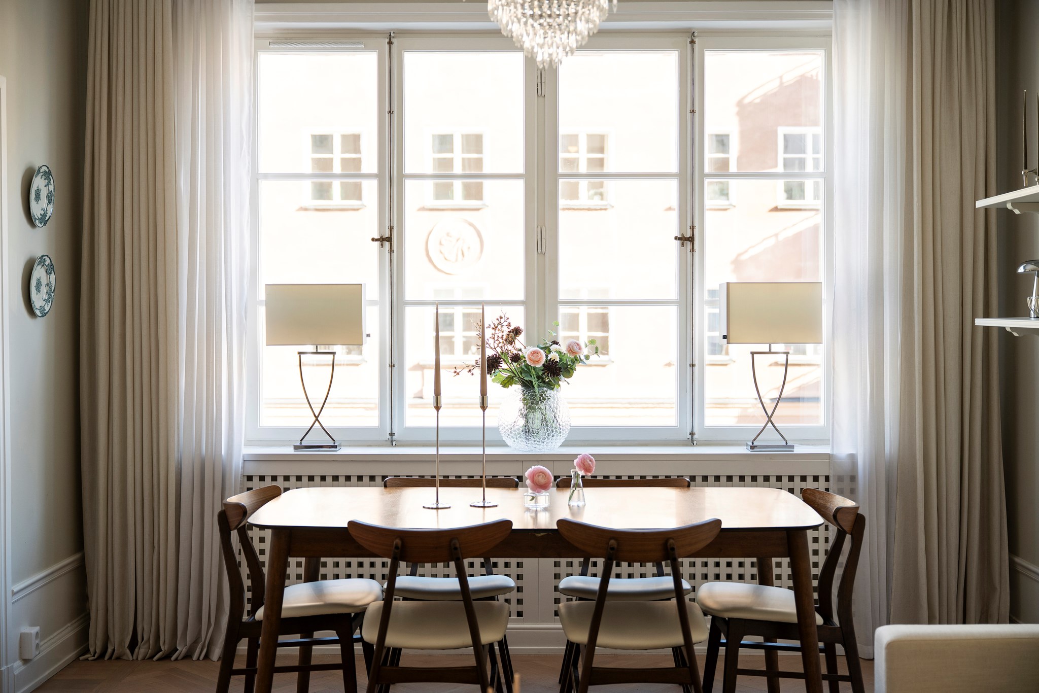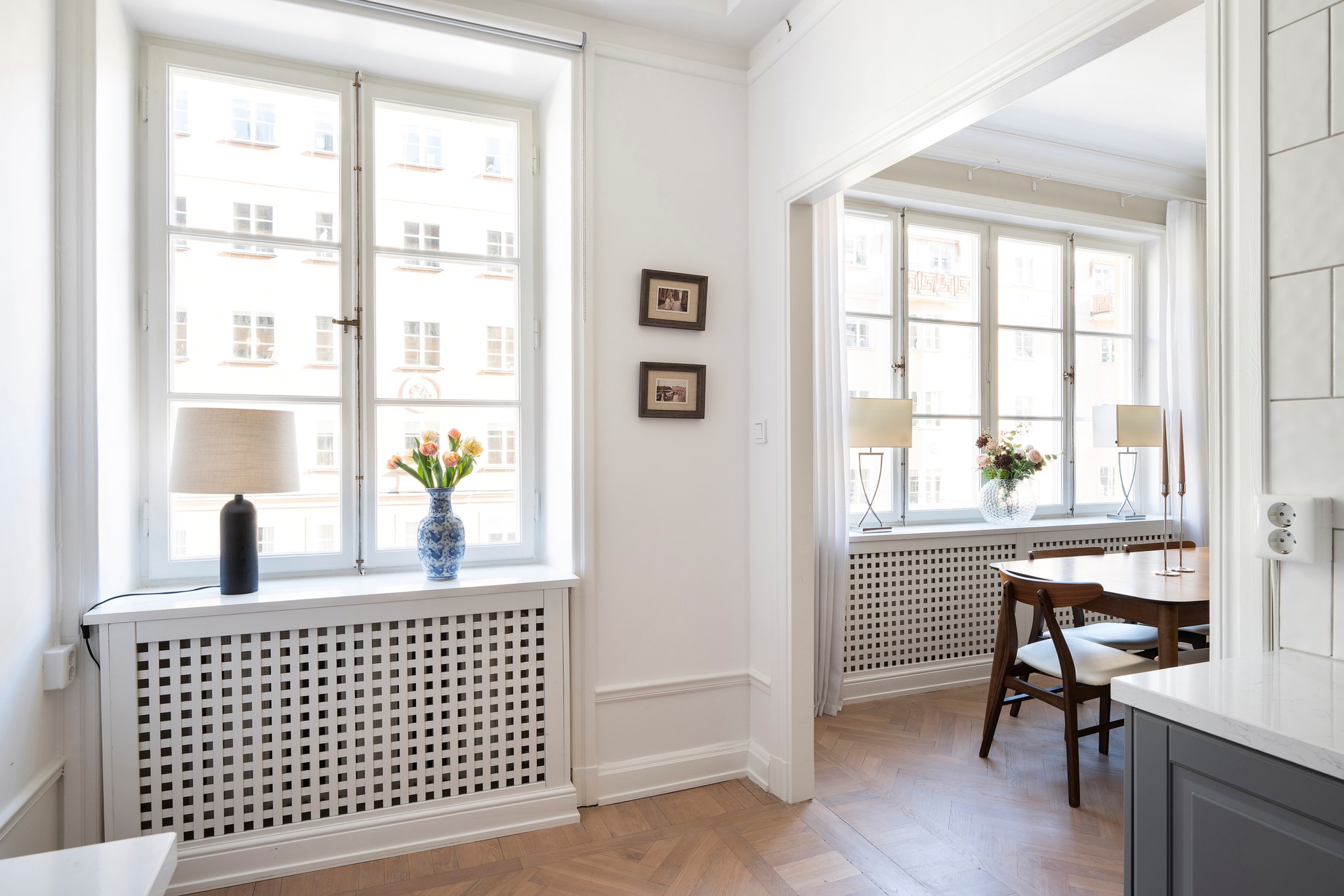 Fint ljusflöde från stort och spröjsat fönster.