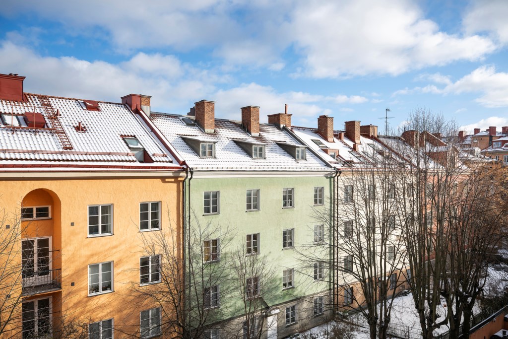 Härlig balkong mot lugn innergård i österläge. Morgon- och förmiddagssol samt vy över gårdshusen och taklandskapet.