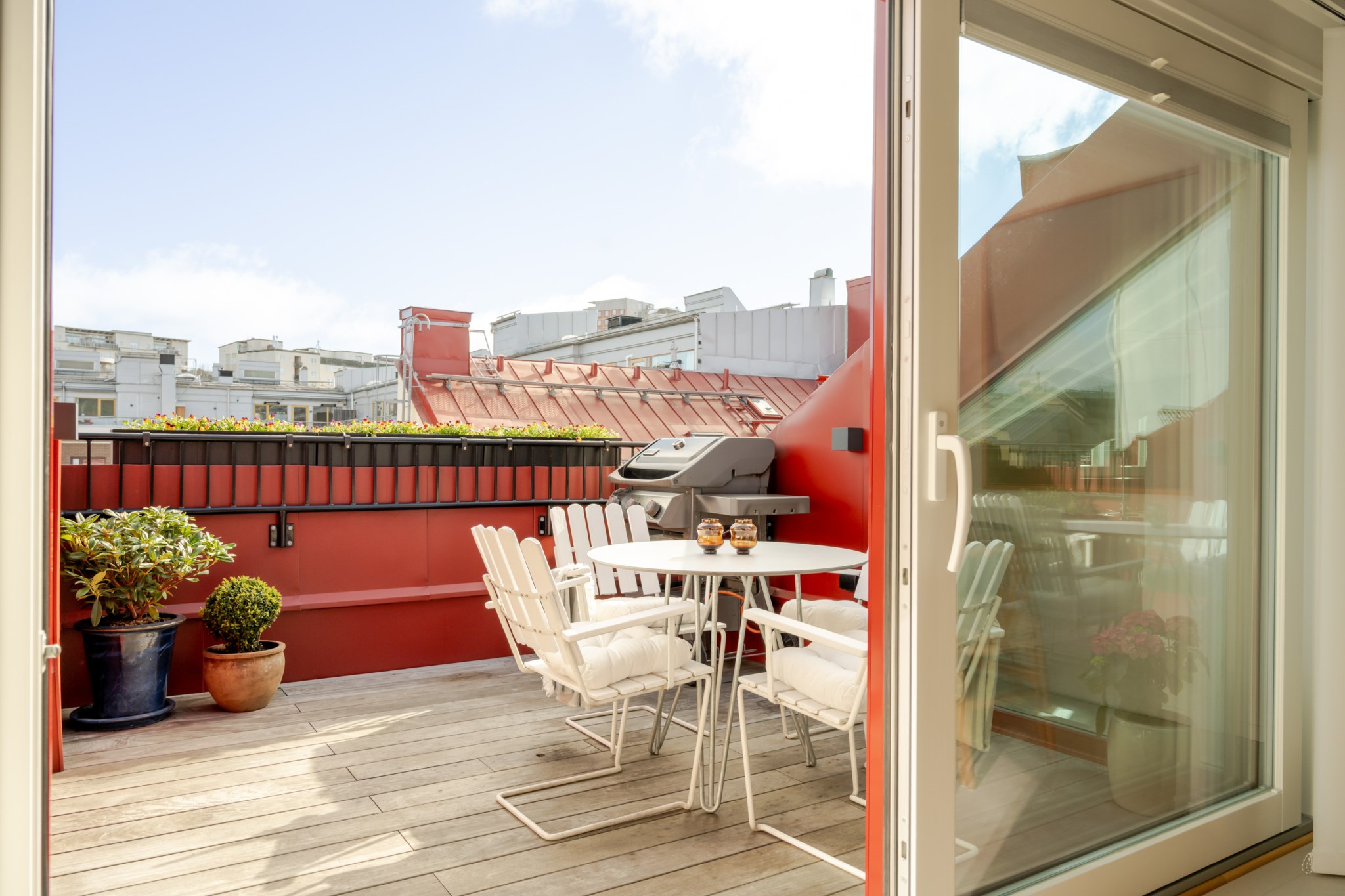 Stor och härlig terrass med gott om utrymme för utemöbler, perfekt för såväl avkoppling som sociala tillställningar.