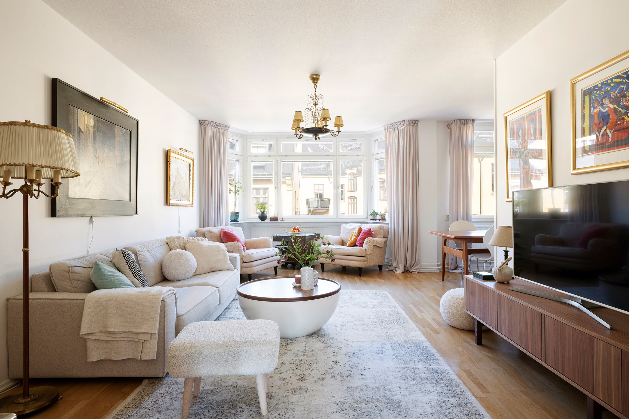 På Södermannagatan 37 flödar ljuset genom den här härliga trean - möjliga fyran - med högt läge och fönster i burspråk. På sjätte våningen finns det mesta ni kan önska - solig balkong i söderläge, vardagsrum och kök i halvöppen planlösning, två stora sovrum och nyrenoverat badrum. Golven pryds av parkett, väggarna är ljusa, fönstren tar plats hela vägen till tak och det finns gott om förvaringsmöjligheter. För den som vill ha ett tredje sovrum kan den nuvarande matplatsen göras om till ett sådant.