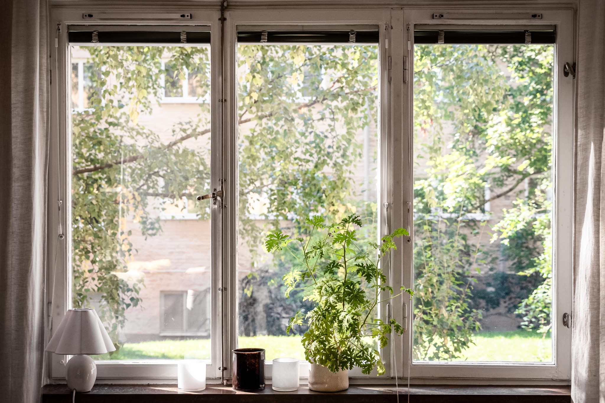 Rofyllt och lugnt sovrum med stort fönsterparti ut mot föreningens lummiga innergård. Här finns plats för stor dubbelsäng, sängbord och annat valfritt möblemang. Två fasta och rymliga garderober med överskåp ger god förvaring.