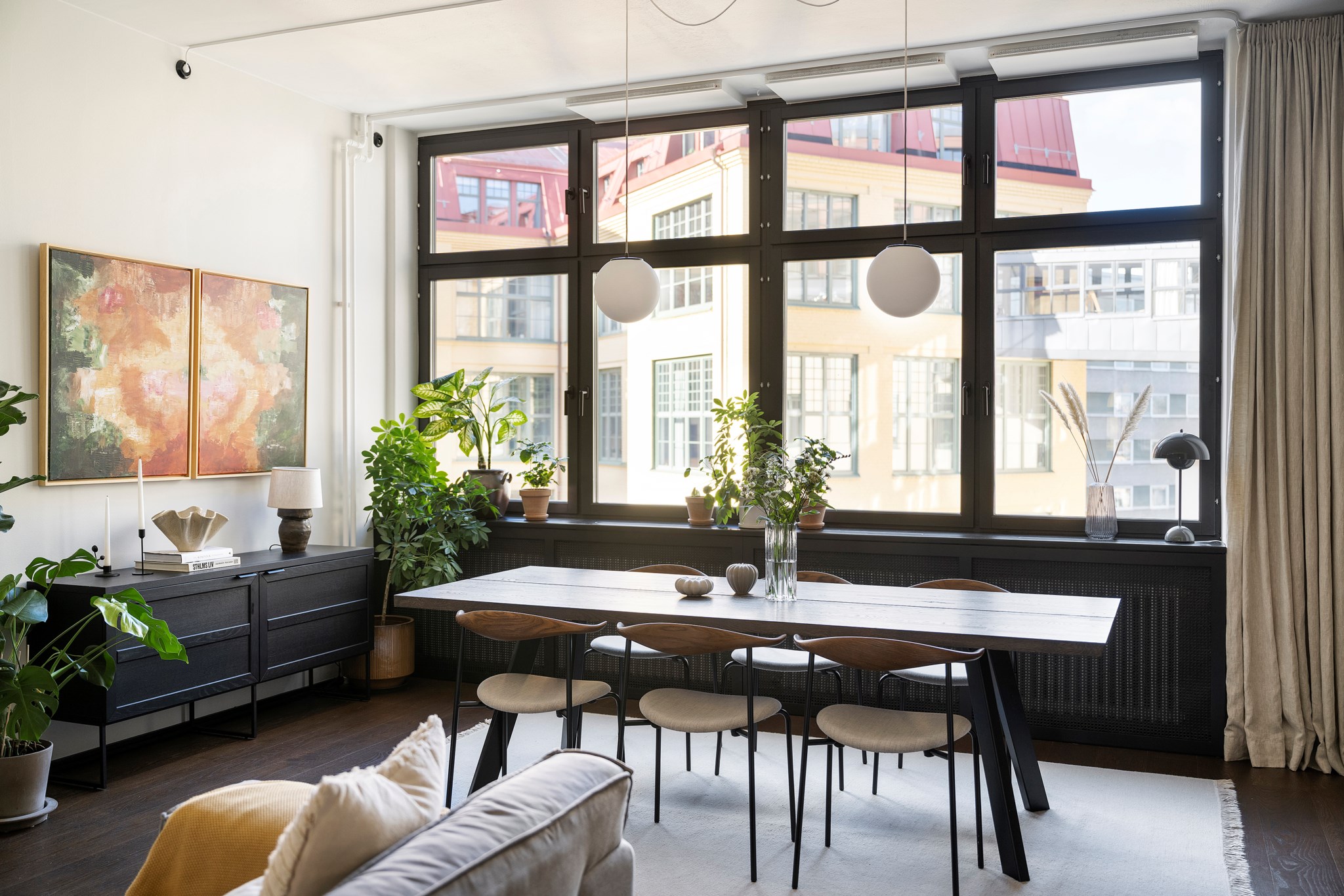 Lägenheten är belägen in mot gård och erbjuder ett generöst ljusflöde från de stora fönsterpartierna. Bostaden har genomgående breda parkettgolv och vacker färgsättning i hela lägenheten i skandinavisk stil med New York känsla. Goda förvaringsmöjligheter tack vare platsbyggda garderobslösningar och mörkmålade fönster som på ett läckert sätt förstärker de utmärkande fönstren. Materialvalen i såväl kök som badrum håller en exklusiv nivå med harmoniska toner. Enklast beskrivs hemmet som ett karaktärsfullt boende med specialdesignad inredning för att på bästa sätt kombinera den ursprungliga industriella känslan med den högsta tänkbara komforten. Lägenheten erbjuder öppen planlösning med en härlig takhöjd, tre sovrum, två lyxigt inredda badrum med alla tänkbara bekvämligheter och goda förvaringsmöjligheter. Tack vare genomgående kvalitativa materialval och skräddarsydd design är detta lägenheten för den kräsna köparen med högt ställda krav på sitt boende. Ett lugnt men samtidigt mycket centralt läge endast ett kvarter bort från Karlbergskanalens vatten och promenadstråk.