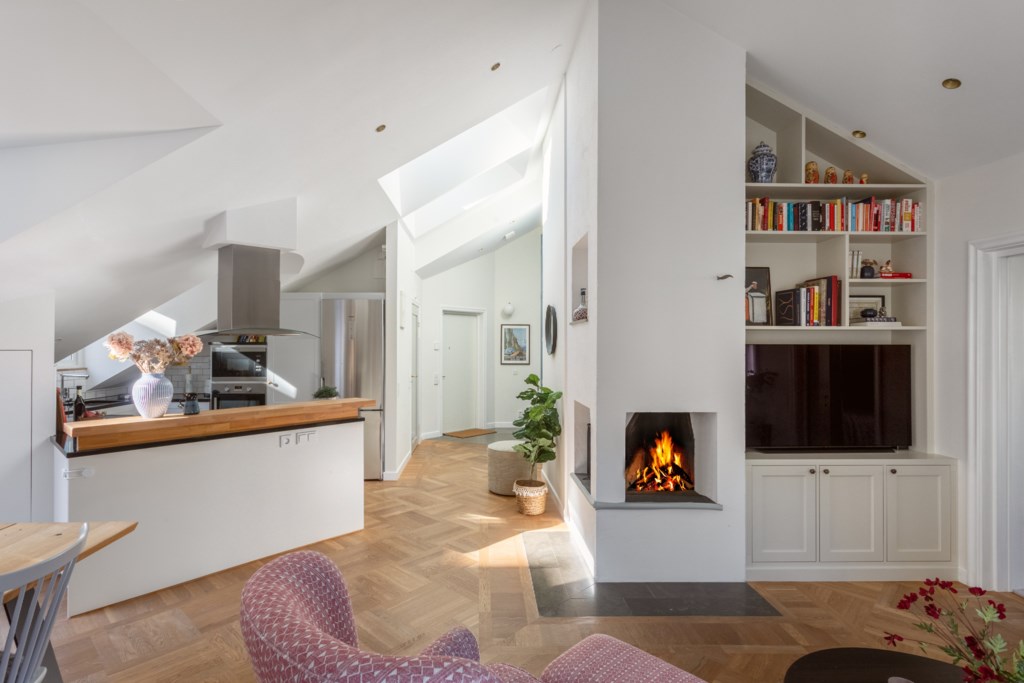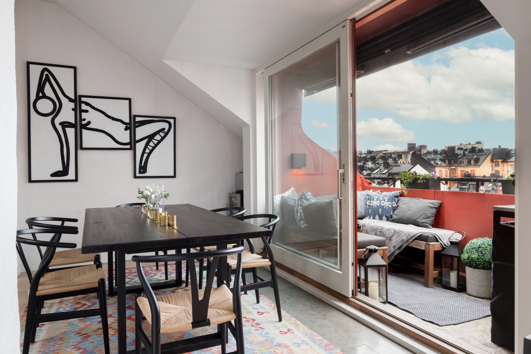 Välkommen till denna suveräna vindsvåning om totalt 105 ljusa och välplanerade kvm i mycket bra skick. Läget i Vasastan är perfekt. Högst upp, närmast himlen i vacker hörnfastighet från 1885 med fri vy över takåsarna. Stora sällskapsytor med öppen planlösning mellan kök och vardagsrum samt generös takterrass i österläge som kronan på verket. Vinden byggdes 2012 och interiört bjuds rakt igenom exklusiva materialval. Två utmärkta sovrum med platsbyggd förvaring. Därtill finns ett separat gäst-wc samt ett badrum med wc, dusch, badkar och tvättpelare. Sammantaget ett optimalt utformat boende med alla de eftertraktade vindsattributen, ett boende utöver det vanliga på trendsäkra Tegnérgatan.