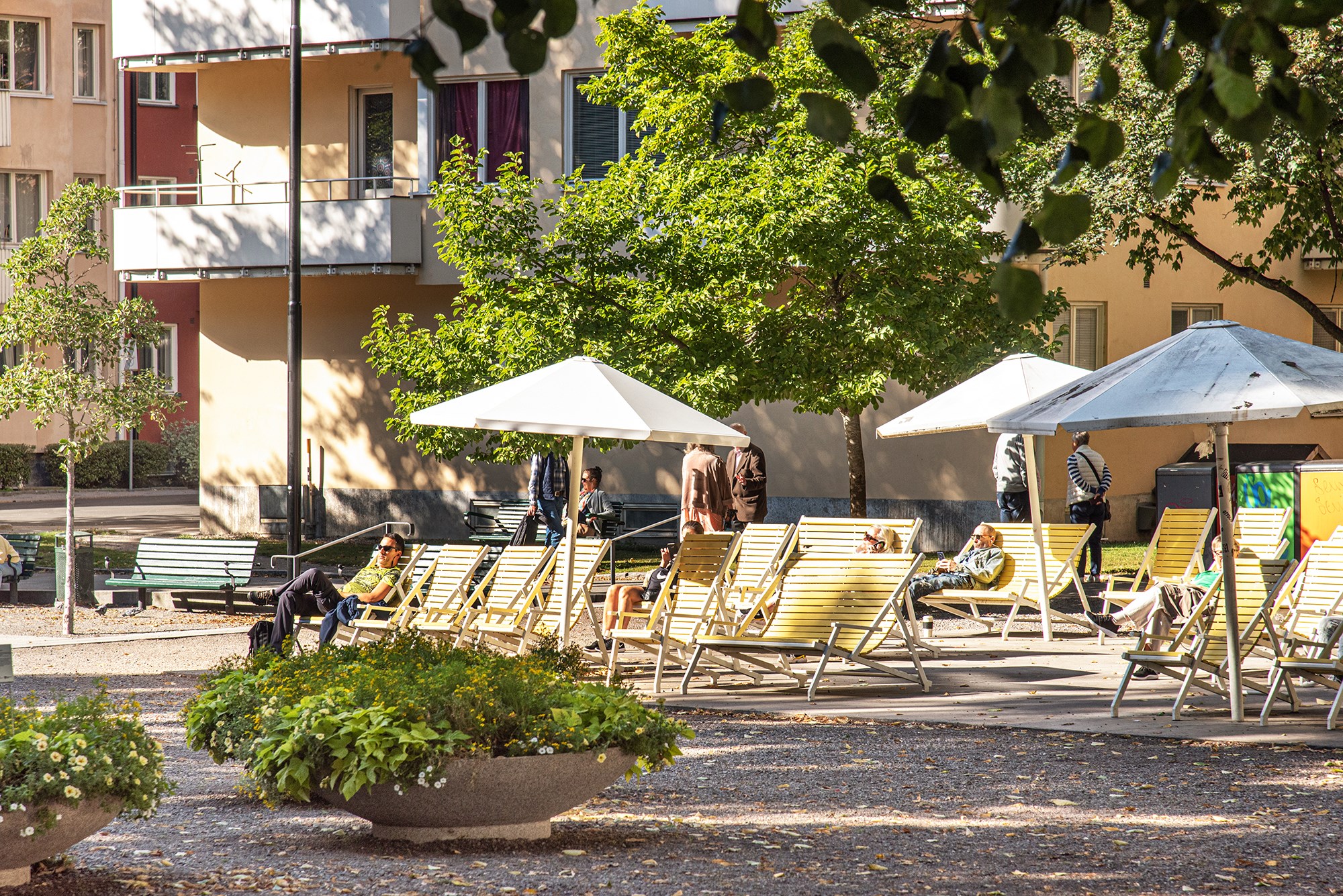 På gården finns fina planteringar, odlingslotter, gräsmatta, sittplatser, grillar, basketplan och lekplats.