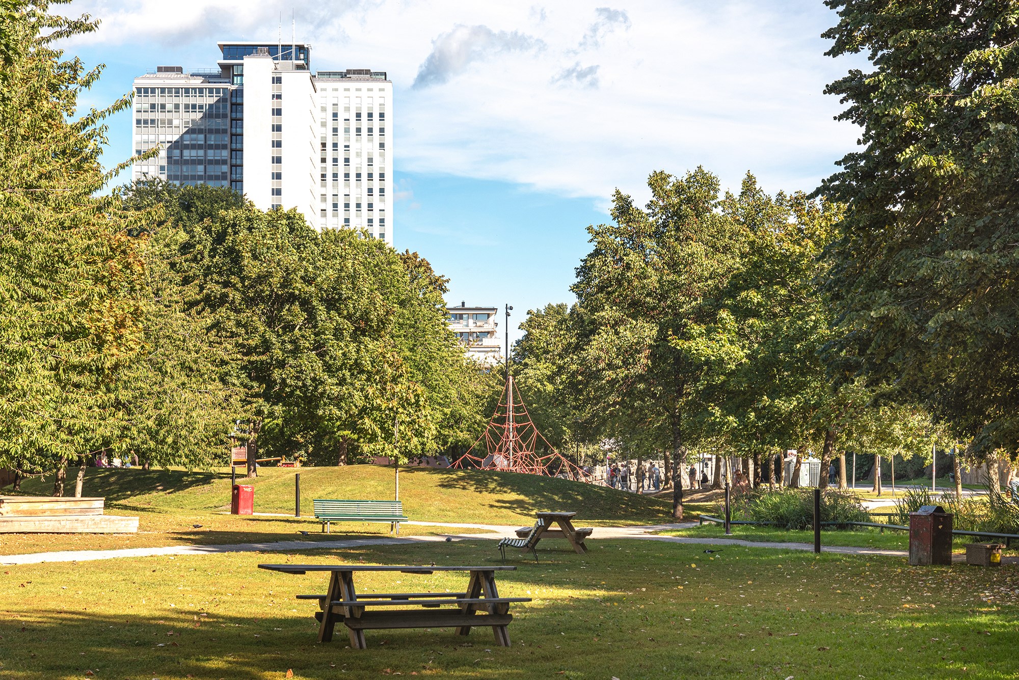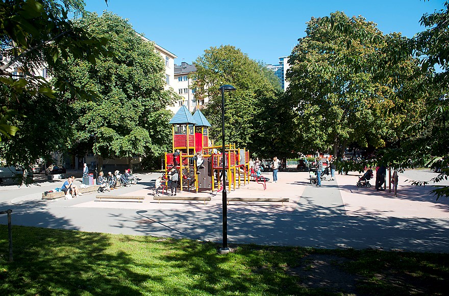 Här finns den ultimata mixen av rofyllt och ändå centralt läge. Mer barnvänligt kan man inte bo, oavsett årstid finns det alltid någonting att göra. Bilfria och grönskande gårdar där barnen kan springa fritt. I direkt anslutning ligger lummiga Rosenlundsparken vars bortre del går under namnet Skånegläntan och vidare lite längre bort finns bilfria Södermalmsallén. En kort promenad bort ligger både Mariatorget med sitt utbud av caféer och restauranger och köpcentret Skrapan med butiker, gym och även ett yogacenter samt klättervägg. Längre ned på Götgatan hittar du Ringens köpcentrum. I kvarteren söder om Folkungagatan - SoFo - hittar du det mesta inom mode och second hand, trendiga restauranger och caféer, samt det härligt svärmande Nytorget som blommar upp till samlingsplats under sommarhalvåret. Fina promenadstråk längs Årstaviken. Dessutom har du Södermalms bästa kommunikationer med både tunnelbana, pendeltåg, och buss i din direkta närhet.