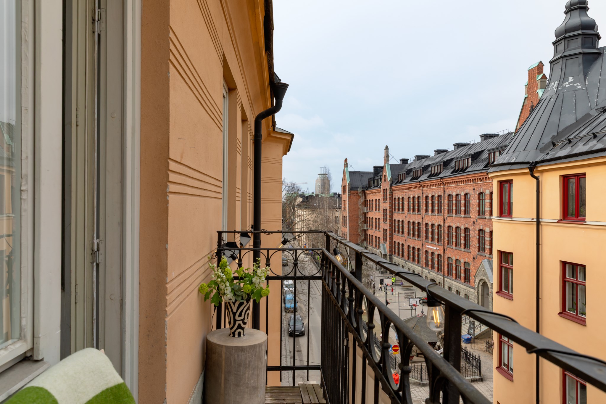 Bostaden är belägen på en lugn del av gatan, fint placerad mellan Katarina Kyrkas stilla kvarter och Folkungagatans levande stadspuls. Med några minuters promenad nås Nytorget, Mosebacke och Medborgarplatsen. Stabil och välskött förening med trivsam innergård med sittplatser och grill.