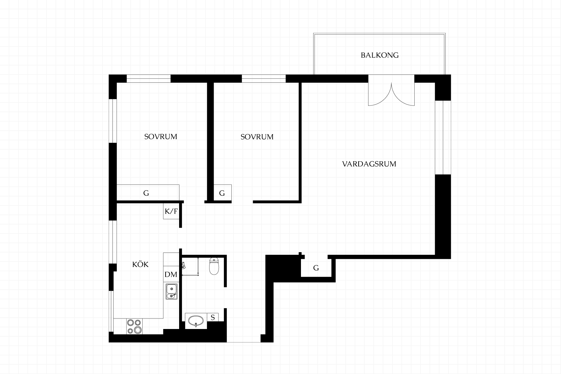 3 rum och kök, varav 2 sovrum