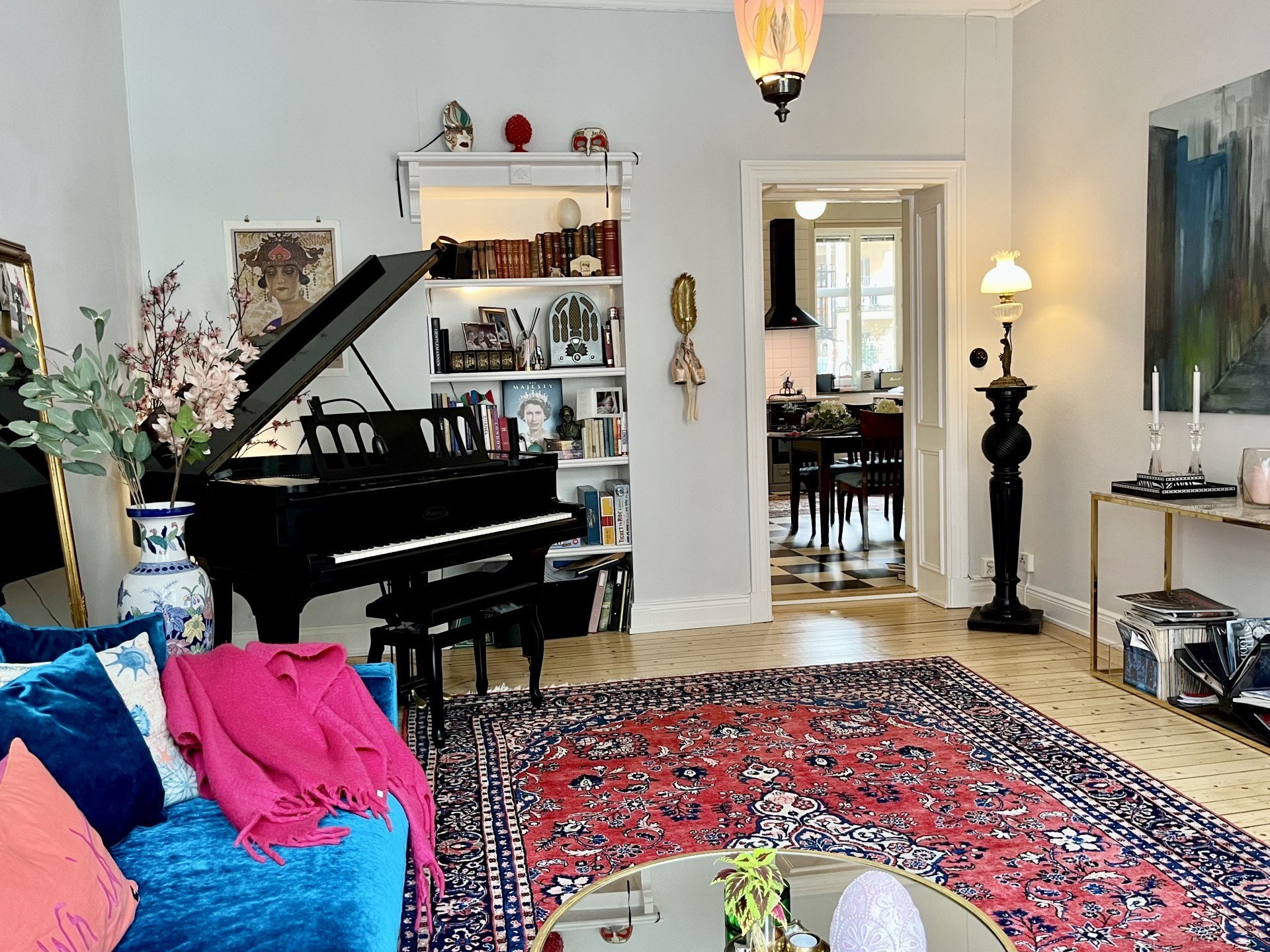 Redan vid första steget in möts du av ett hem med tydlig karaktär och ett naturligt ljusflöde. Lägenheten är genomgående från gård till gata och erbjuder en social, välbalanserad planlösning där det pampiga vardagsrummet utgör bostadens hjärta. Här flödar ljuset in genom flera höga fönsterpartier med djupa nischer och skapar en luftig och inbjudande atmosfär. I vardagsrummet återfinns en aktiv rökkanal – en sällsynt möjlighet för den som vill installera kakelugn och ytterligare förstärka sekelskifteskänslan och höja mysfaktorn.