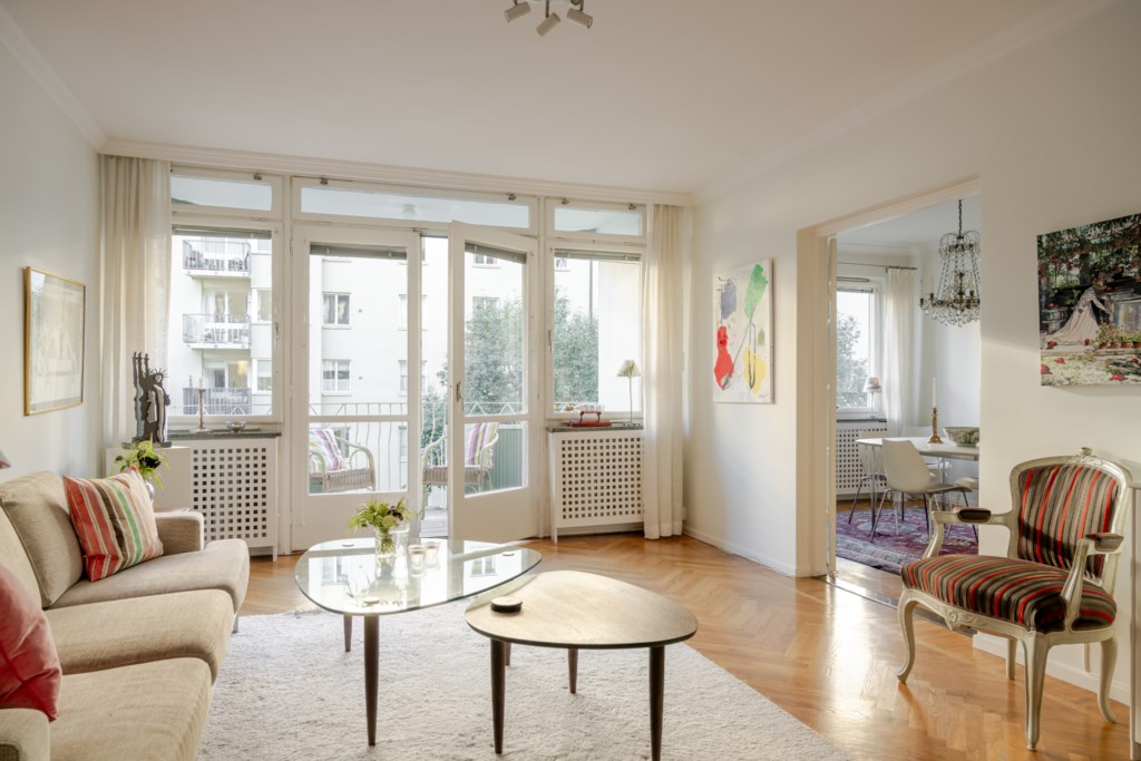 Välkommen till en suverän hörnlägenhet om 125 ljusa och välplanerade kvm i mycket bra skick. Högst upp med vacker stadsvy över Upplandsgatan, takåsar och Tegnerlunden De tidstypiska detaljerna är på plats såsom högt till tak, fiskbensparkett, platsbyggd bokhylla, stora fönster med djupa fönsternischer, fungerande öppen spis samt skjutdörrar och snövita snickerier. Ogenerad balkong i sydväst med plats för bord, stolar och möjlighet till grill. Lägenheten går att med relativt enkla medel att göra om till en 5:a med fyra sovrum.