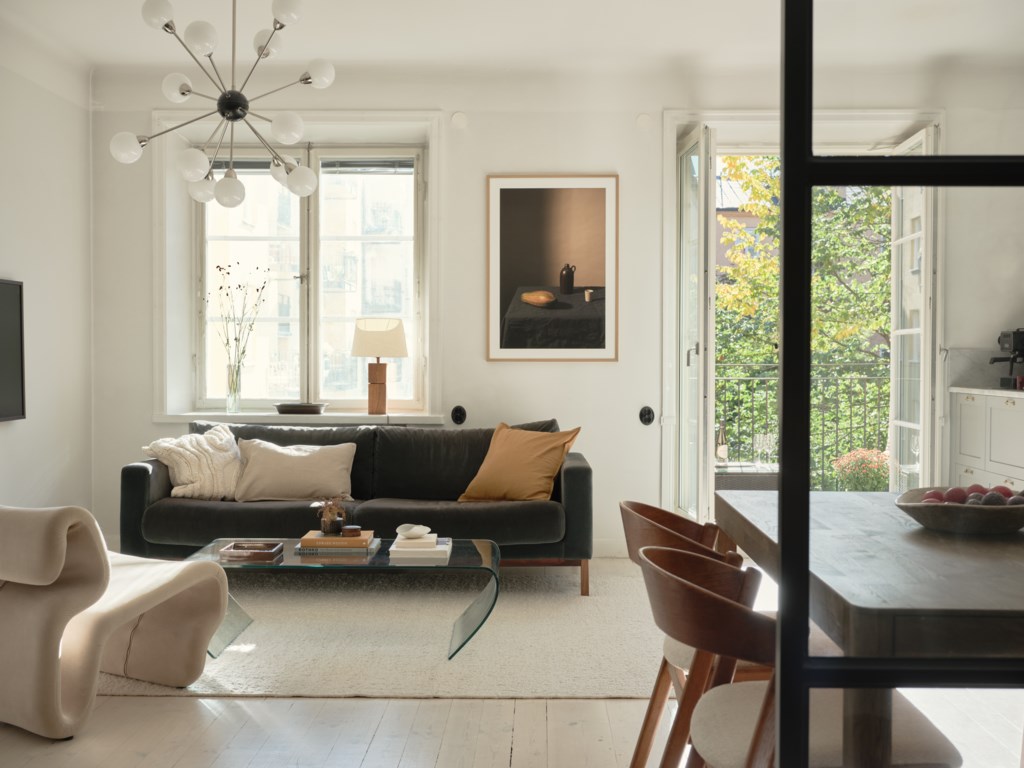 Planlösningen är optimalt disponerad och mycket tillgänglig med öppna och sociala sällskapsytor i kök och vardagsrum. Det platsbyggda köket från Ballingslöv (renoverat 2024) i ett klassiskt utförande har luckor i greige, gott om förvaring, bra arbetsytor, köksö samt komplett maskinell utrustning med bland annat vinkyl. Det angränsande vardagsrummet är luftigt och har naturlig plats för soffgrupp och matsalsbord.