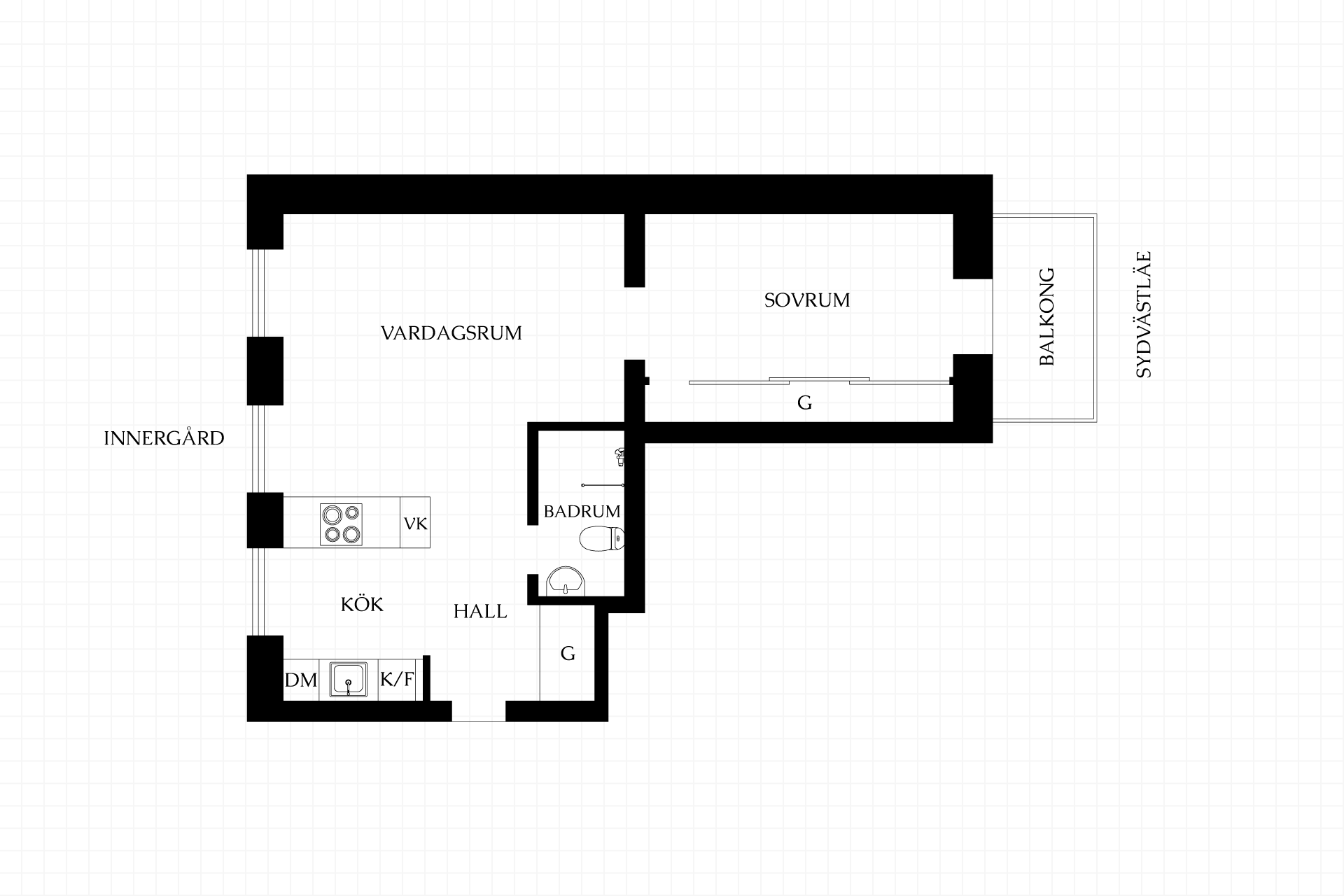 2 rum och kök, varav 1 sovrum