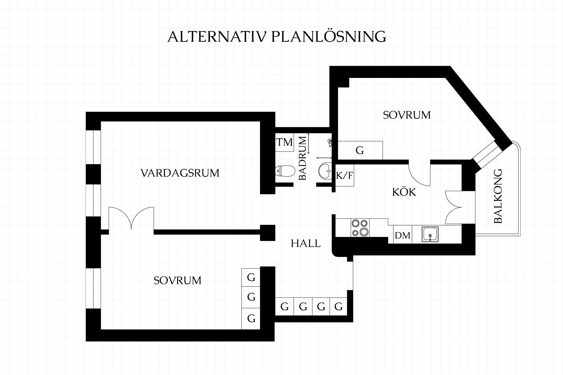 I öppen anslutning till kök ligger matsalen som rymmer en större matgrupp. För den som önskar går det enkelt att sätta upp vägg på nytt och nyttja rummet som ett sovrum. Matplats får plats i vardagsrummet.