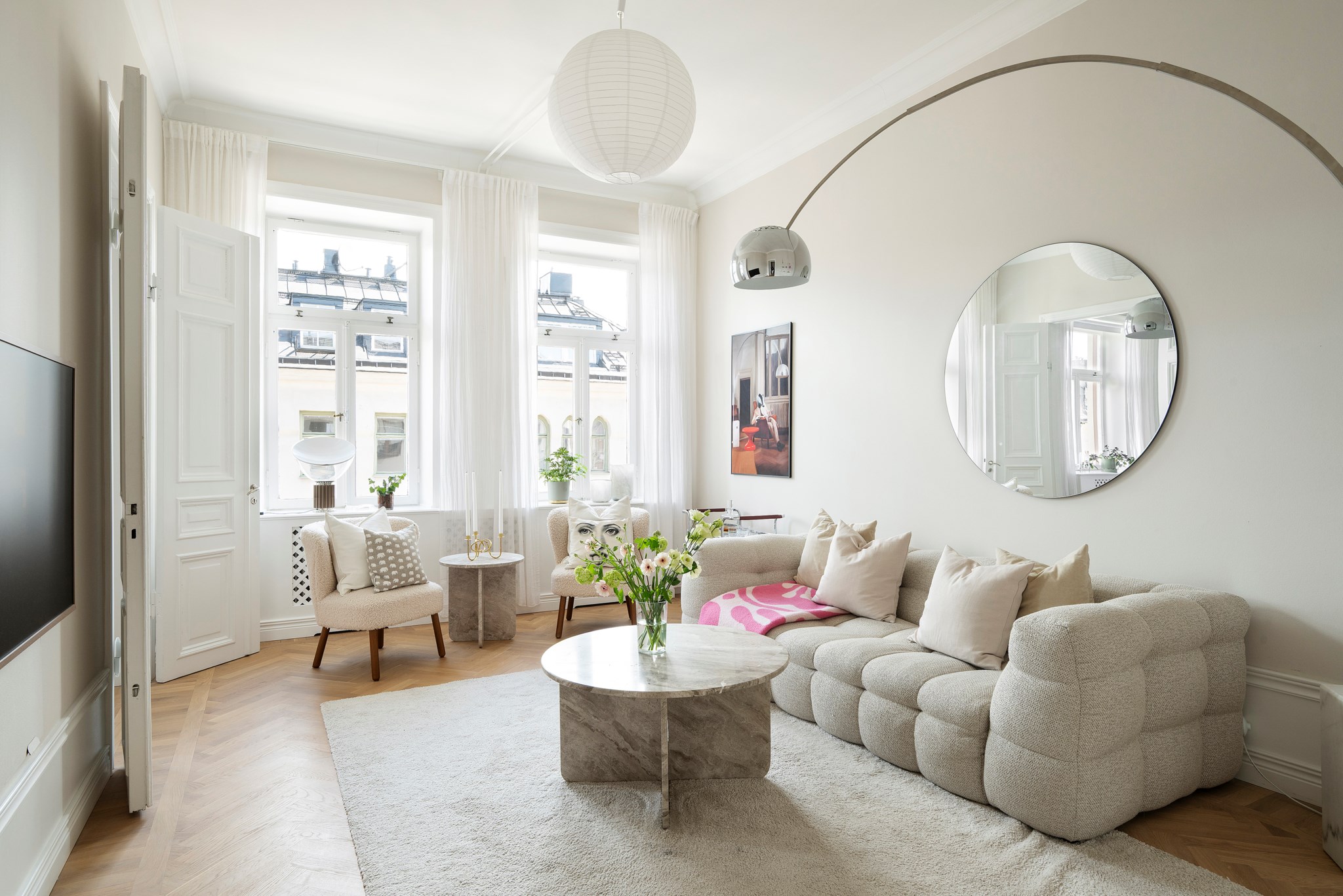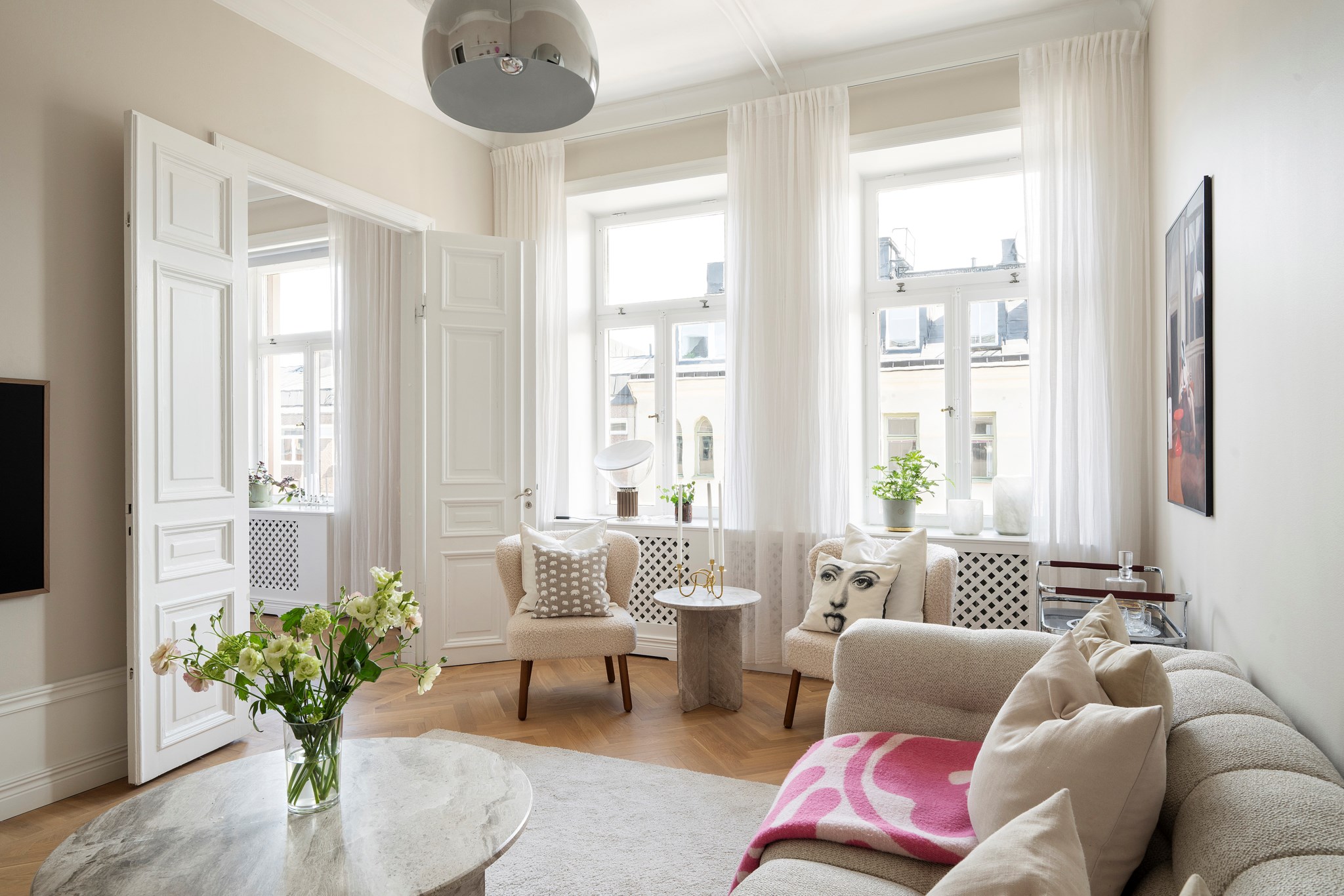 Med ett oslagbart läge finns denna smakfulla och sociala sekelskiftestvåa, möjlig trea på våning fyra med solig balkong i sydväst in mot gård. Ett ljuvligt boende som garanterat kommer att älskas av den stilmedvetna som trivs i vackra miljöer med hemtrevlig atmosfär. Bostaden är genomgående och håller ett gott skick och disponeras idag med ett stort sovrum, ett lättmöblerat vardagsrum med plats för både matplats och soffgrupp, kök med stor matplats och utgång till den soliga balkongen. För den som önskar går det enkelt att göra bostaden till en trea genom att sätta upp en vägg mellan kök och matplats. Här kombineras sobra färgsättningar, vardagskomfort, fina materialval och originalattribut vilket gör bostaden lätt att förälska sig i. Bostaden karaktäriseras av byggåret 1903 som återfinns i gedigen takhöjd, vacker fiskbensparkett och stora fönsterpartier med djupa nischer. Balkongen når man från köket och ligger i högt läge in mot innergården, sommartid har man sol från ca 14.00-21.00. Detta är ett hem för paret eller den lilla familjen som varken vill kompromissa med läge eller komfort. Lägg därtill att det är en välskött fastighet och förening med låg belåning och som äger marken. Här kombineras fågelkvitter och storstadsliv på bästa möjliga sätt. Varmt välkommen på visning!